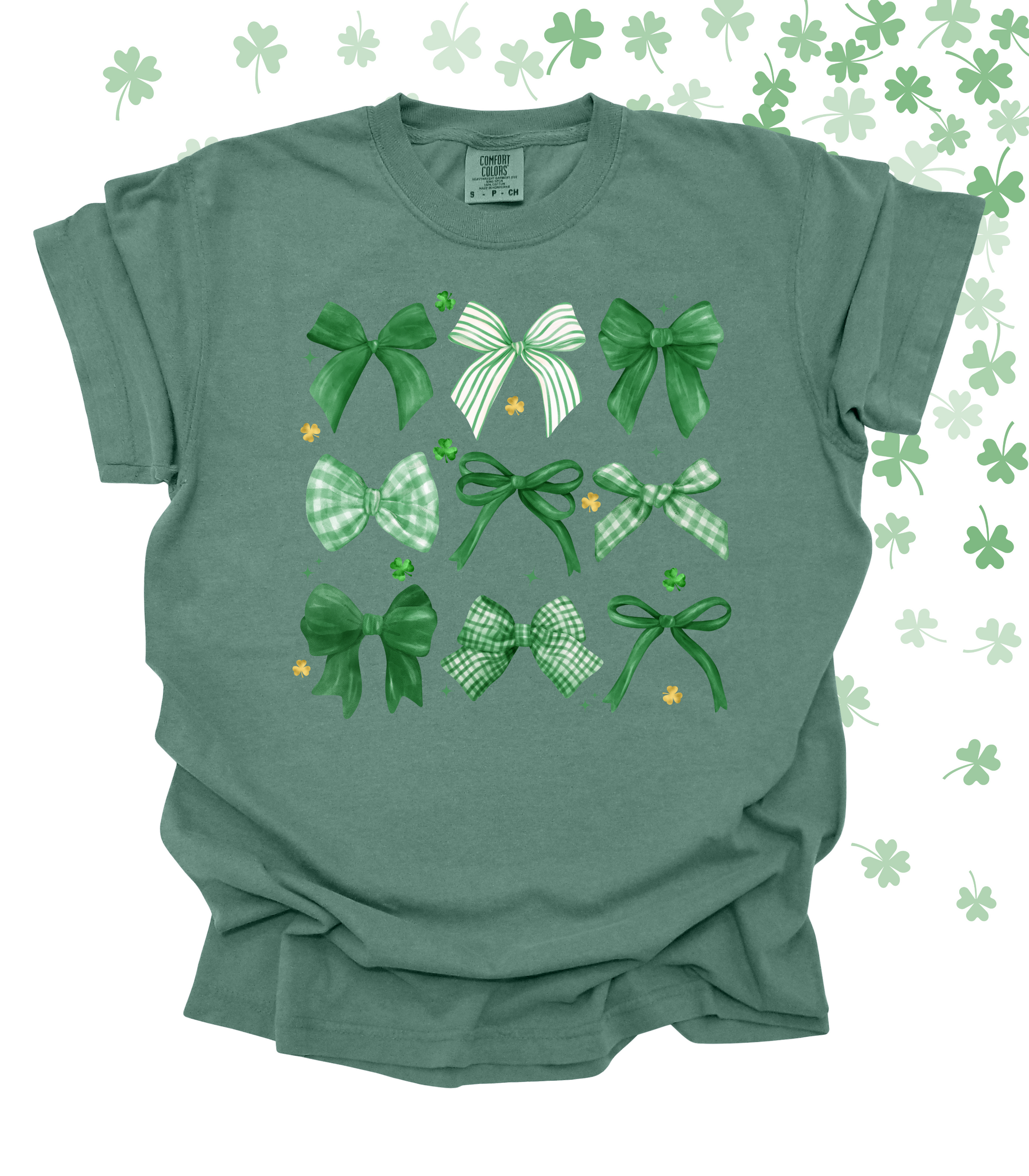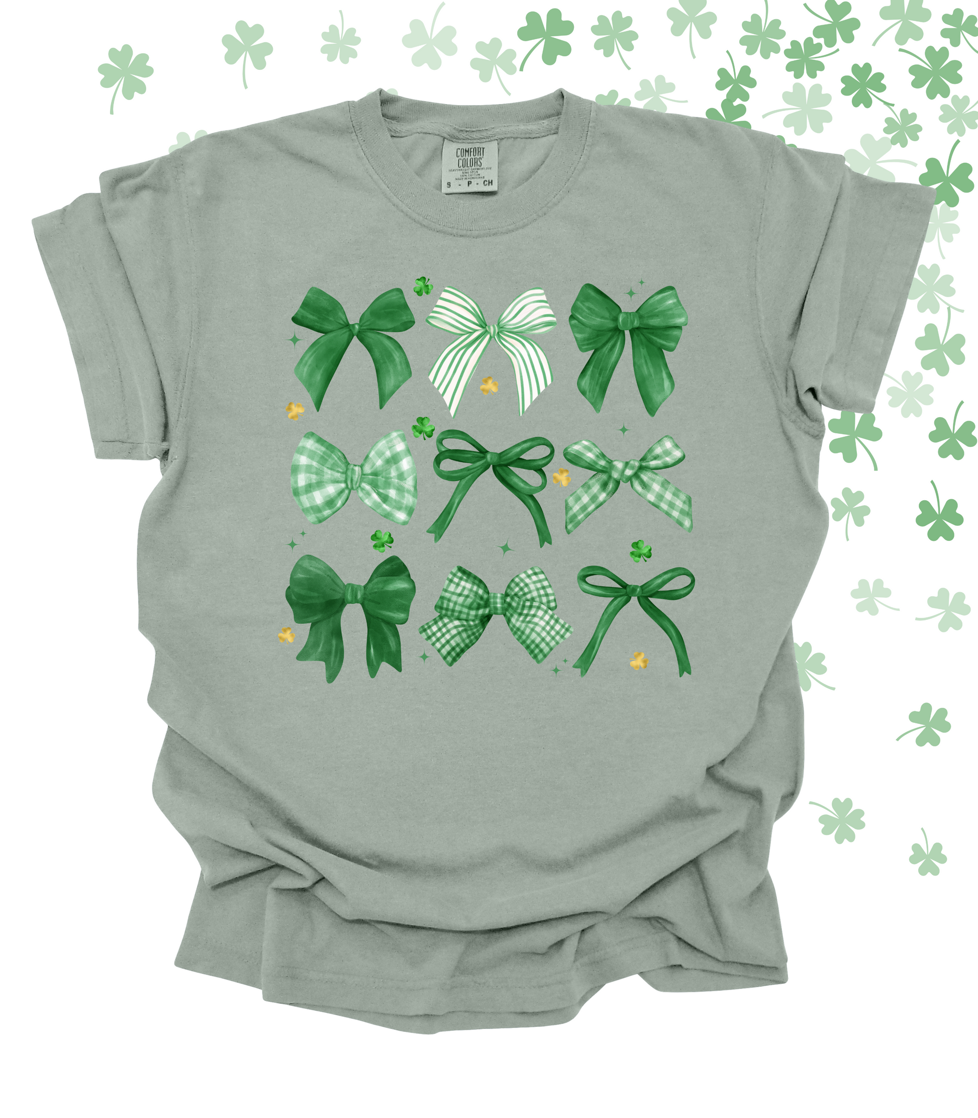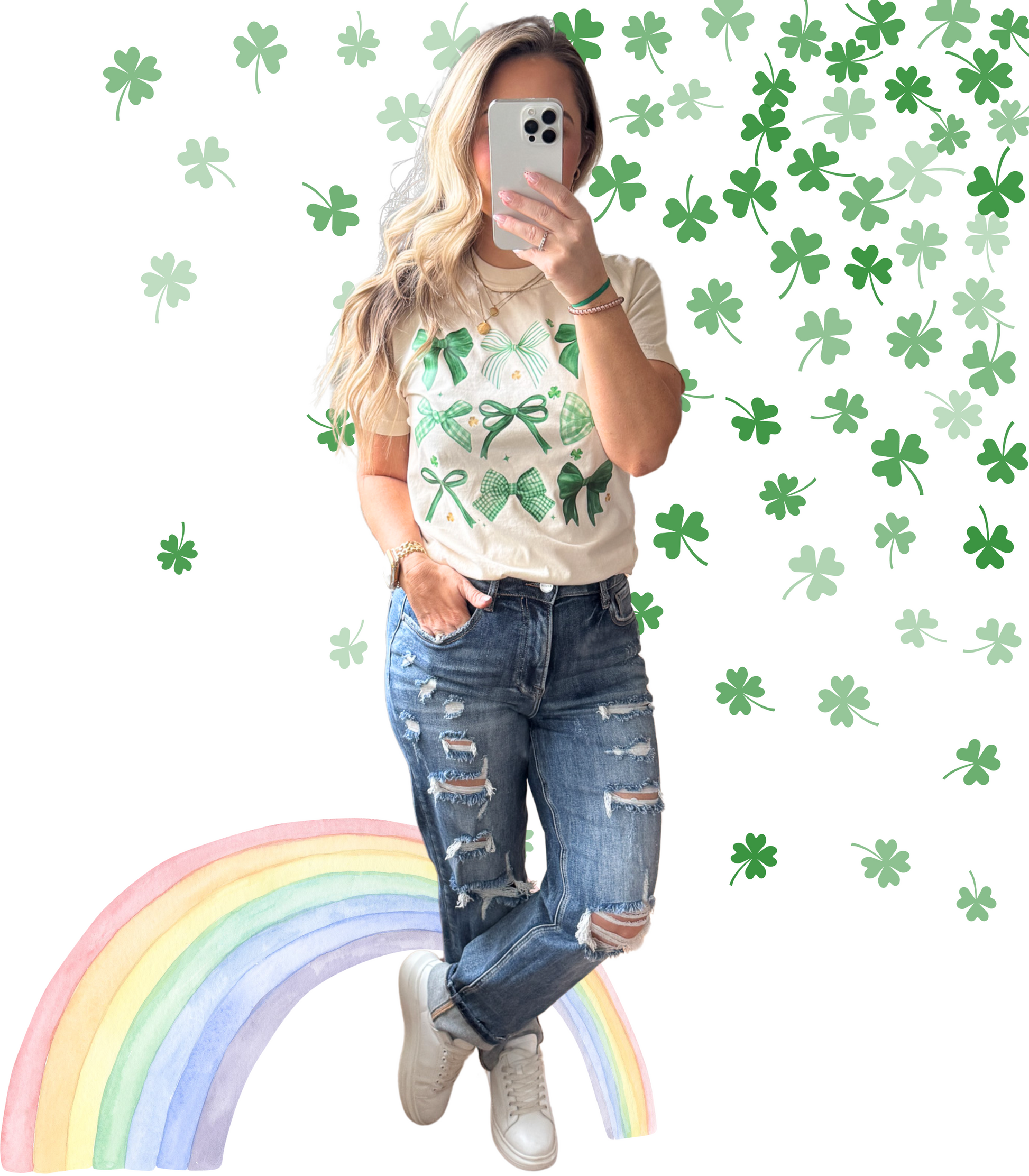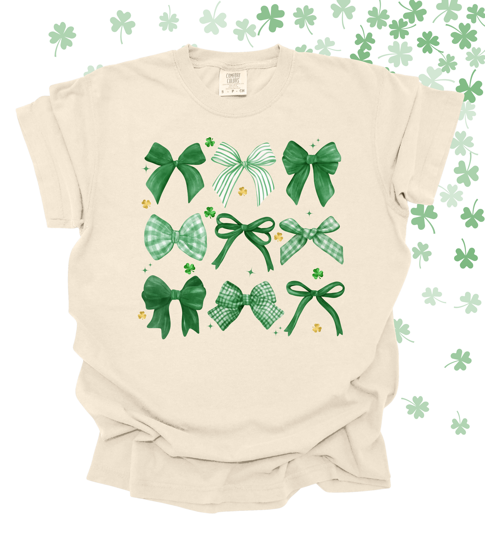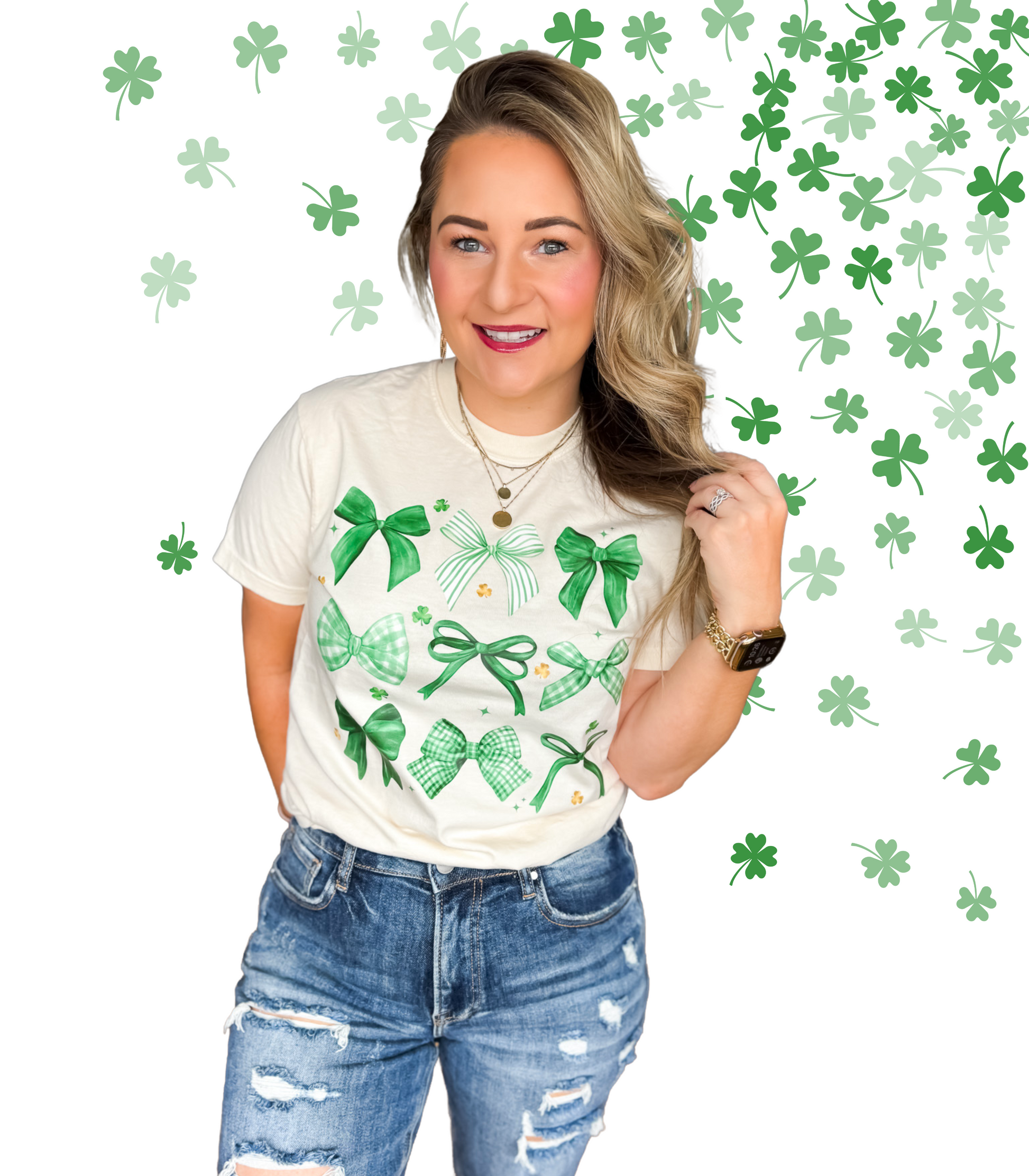 A LITTLE LUCK BOW COLLAGE TEE/CREW