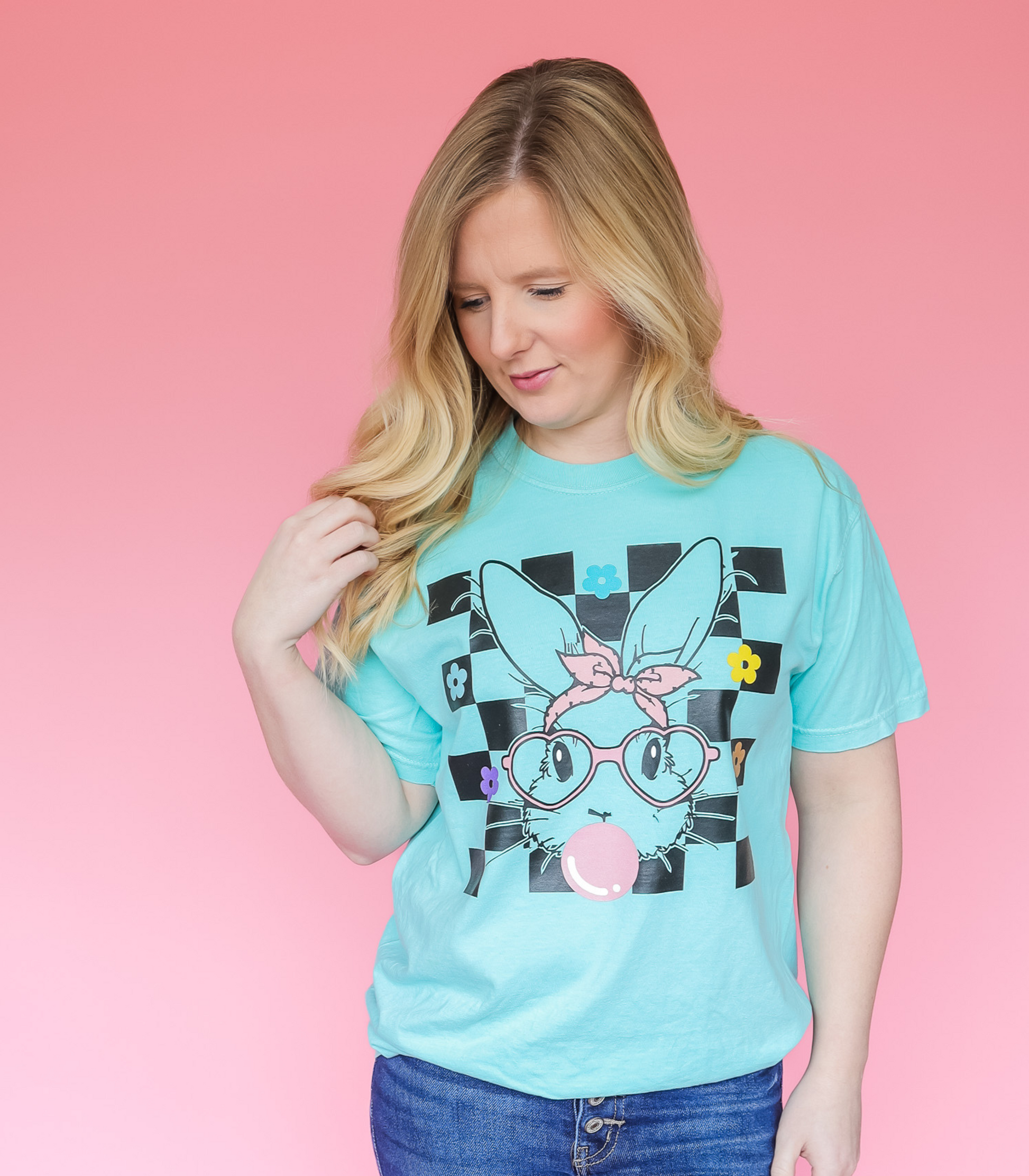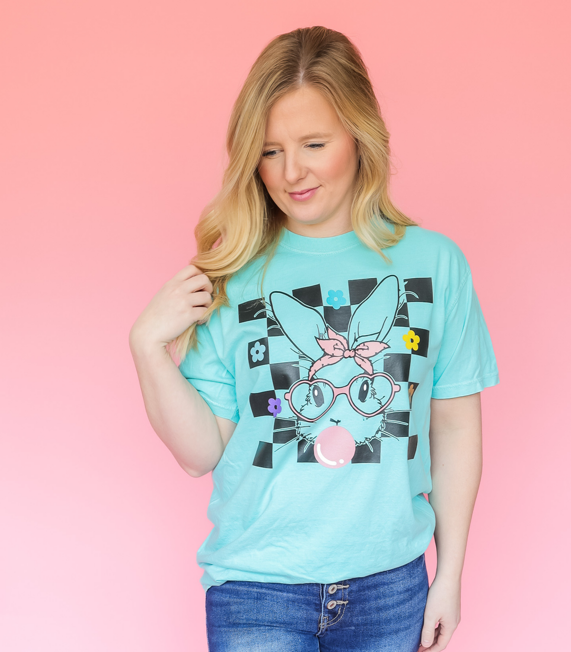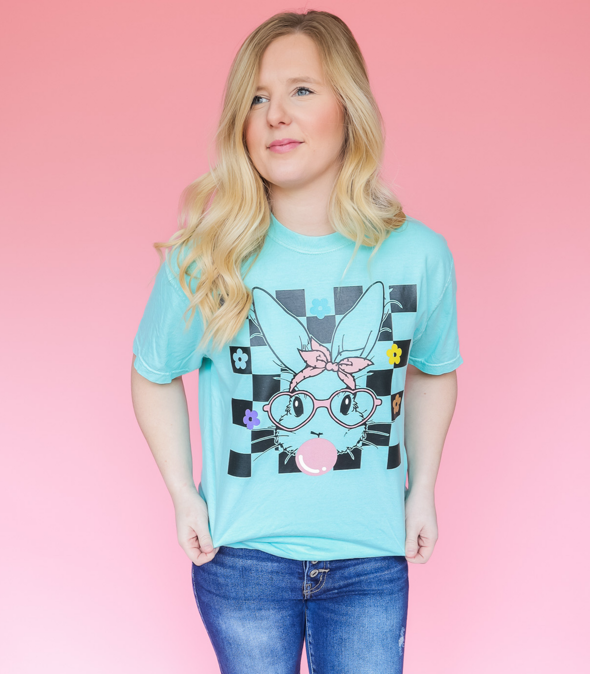 ADULT BLACK CHECKERED BUBBLE GUM BUNNY