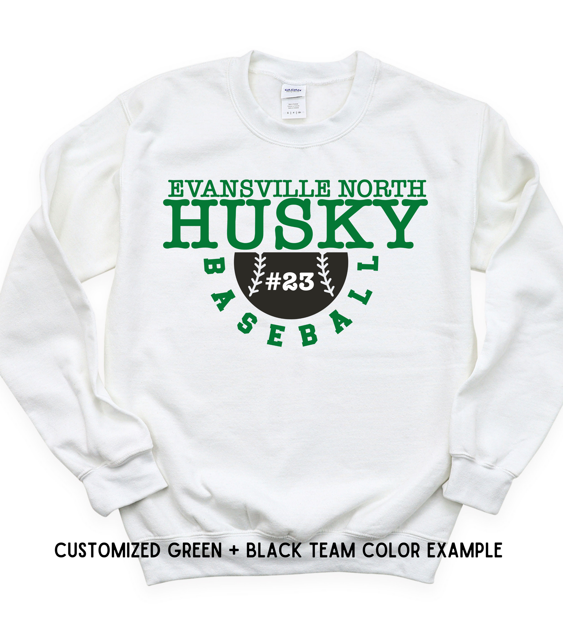 ADULT CUSTOMIZABLE HALF BASEBALL SCHOOL+MASCOT CREWNECK