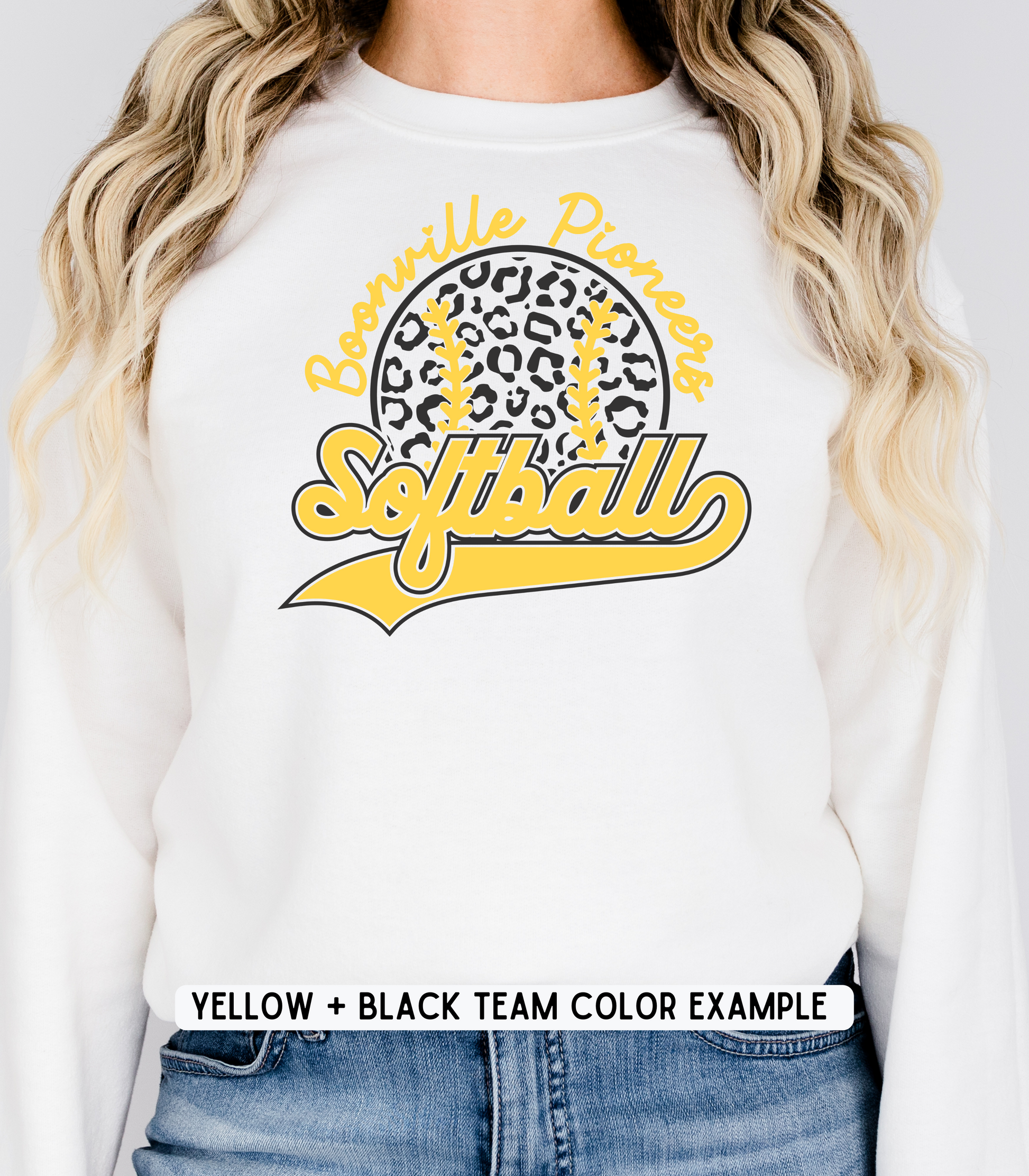 ADULT CUSTOMIZABLE SOFTBALL CHEETAH FILLED CREWNECK