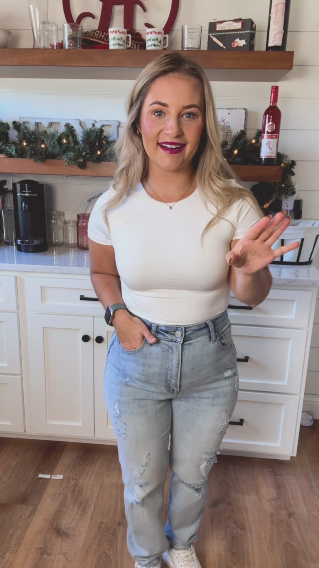 Model stats: 5' 133lbs, size 7-9 in jeans, small/medium in shirts typically and is wearing a small which is her normal size. We recommend ordering your true size.