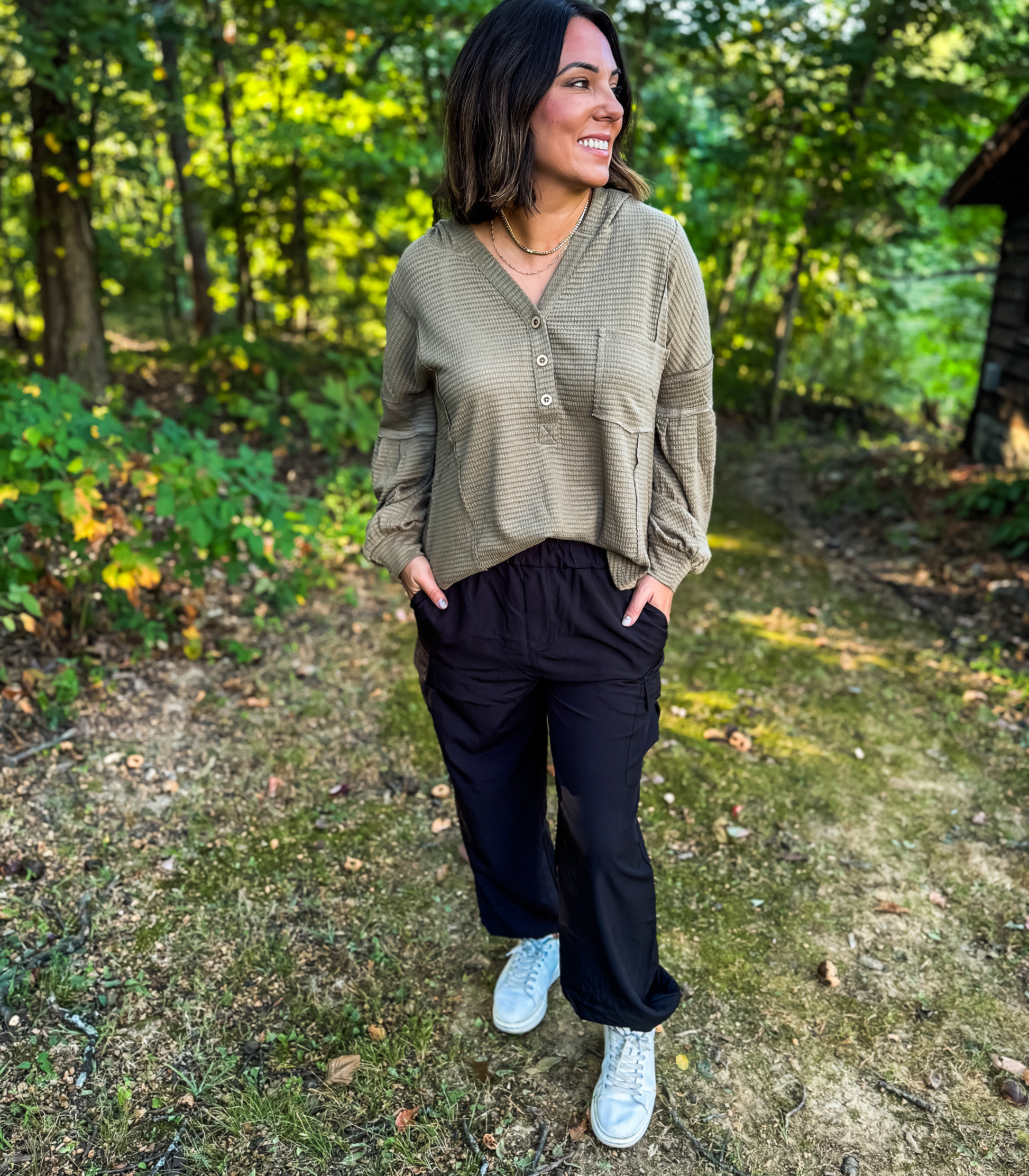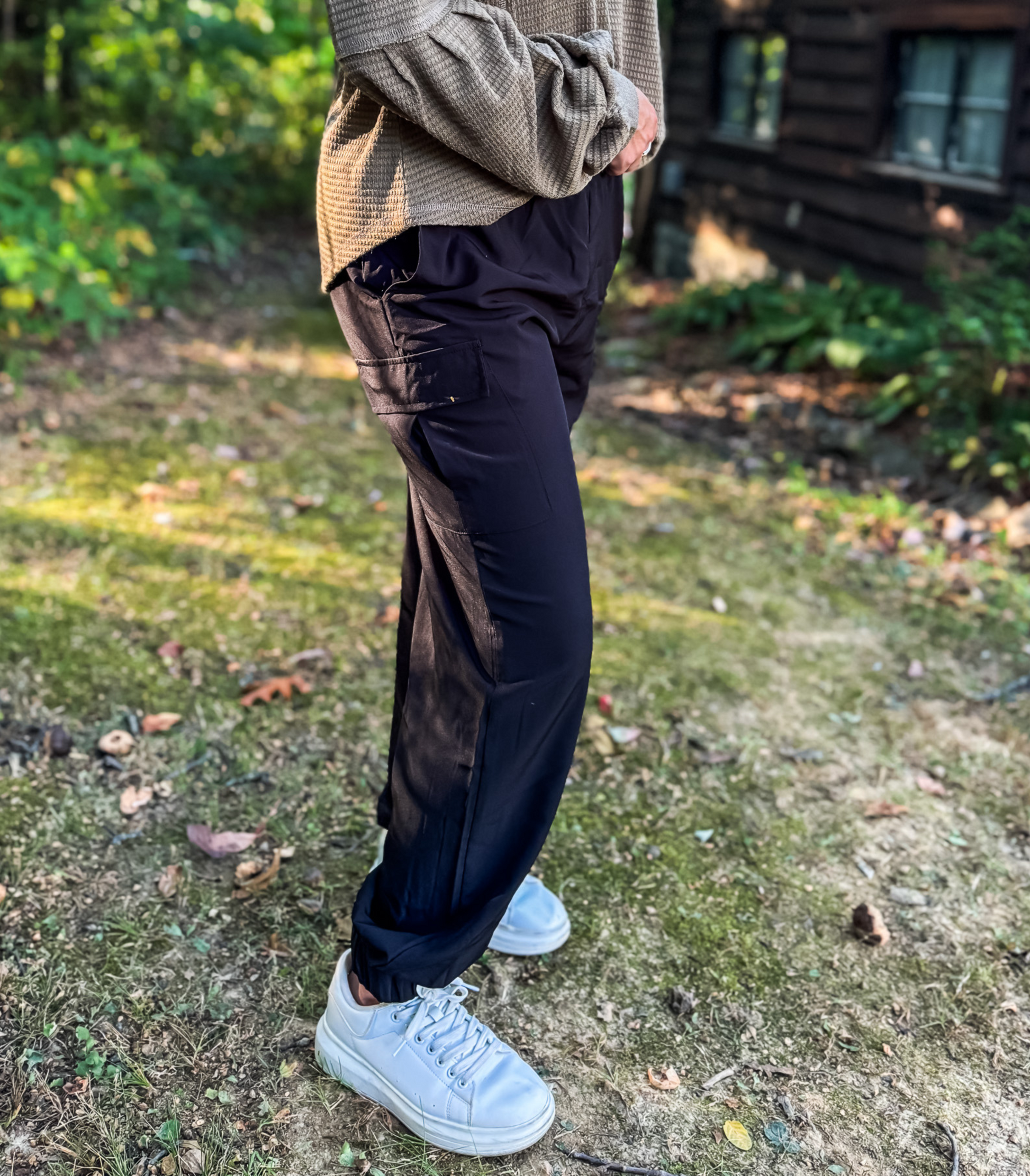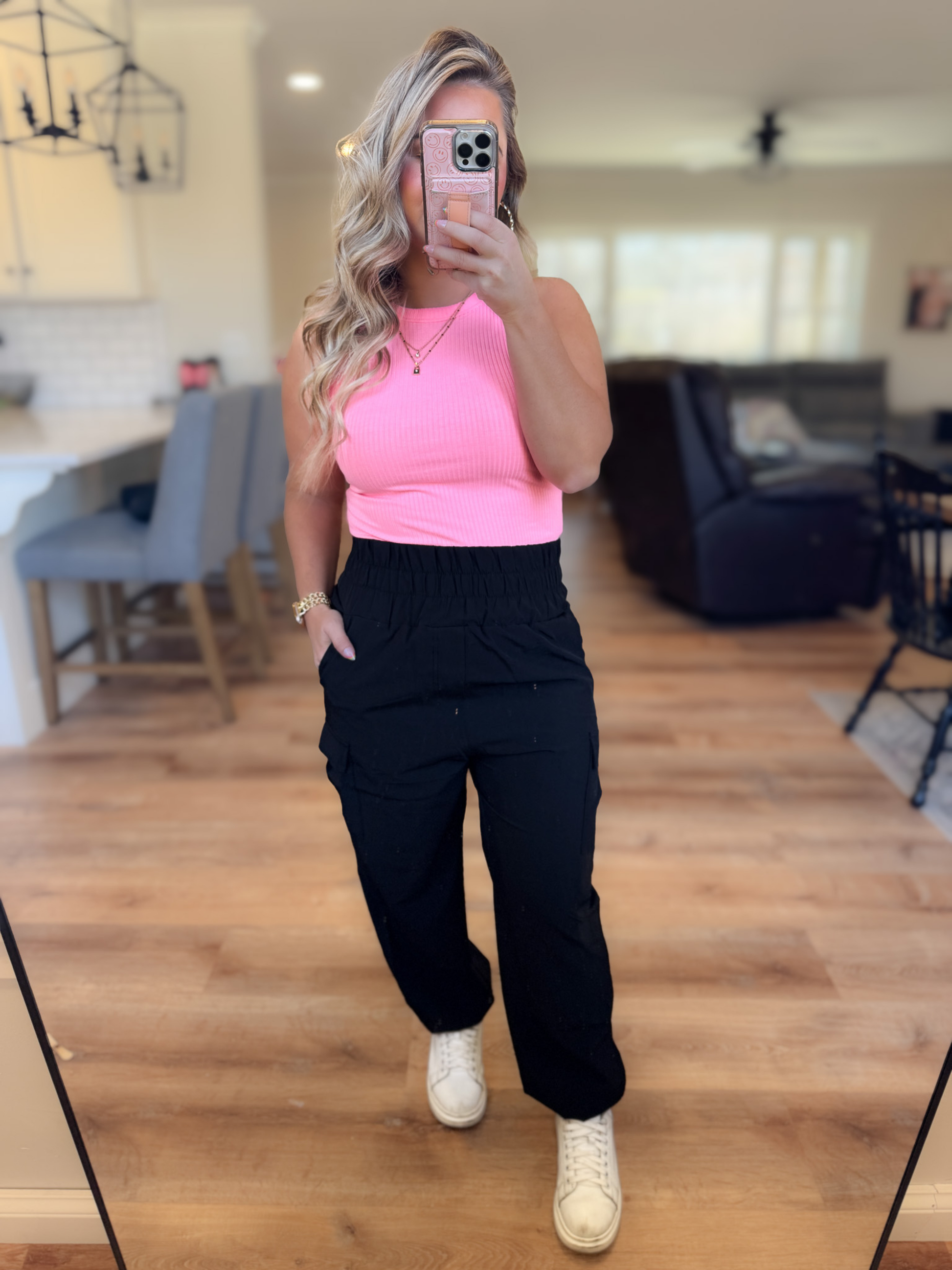 *BEST SELLING* ON THE MOVE SMOCKED WAIST CARGO JOGGERS - BLACK