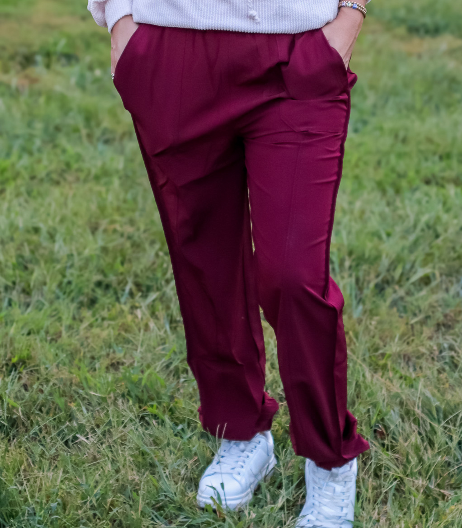 *BEST SELLING* ON THE MOVE SMOCKED WAIST JOGGERS - BERRY