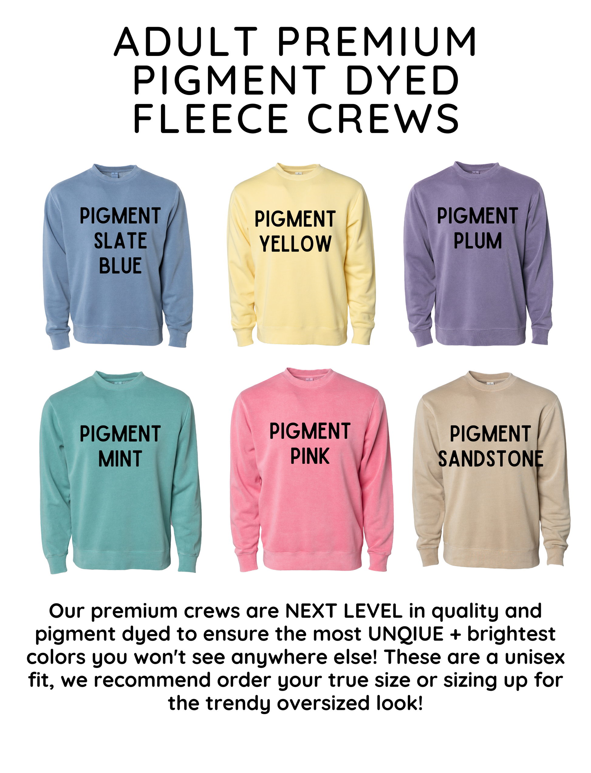 Our premium crews are NEXT LEVEL in quality and pigment dyed to ensure the most UNQIUE + brightest colors you won't see anywhere else! These are a unisex fit so they will run slightly larger than typical women's sizing, we recommend order your true size or sizing up for the trendy oversized look!