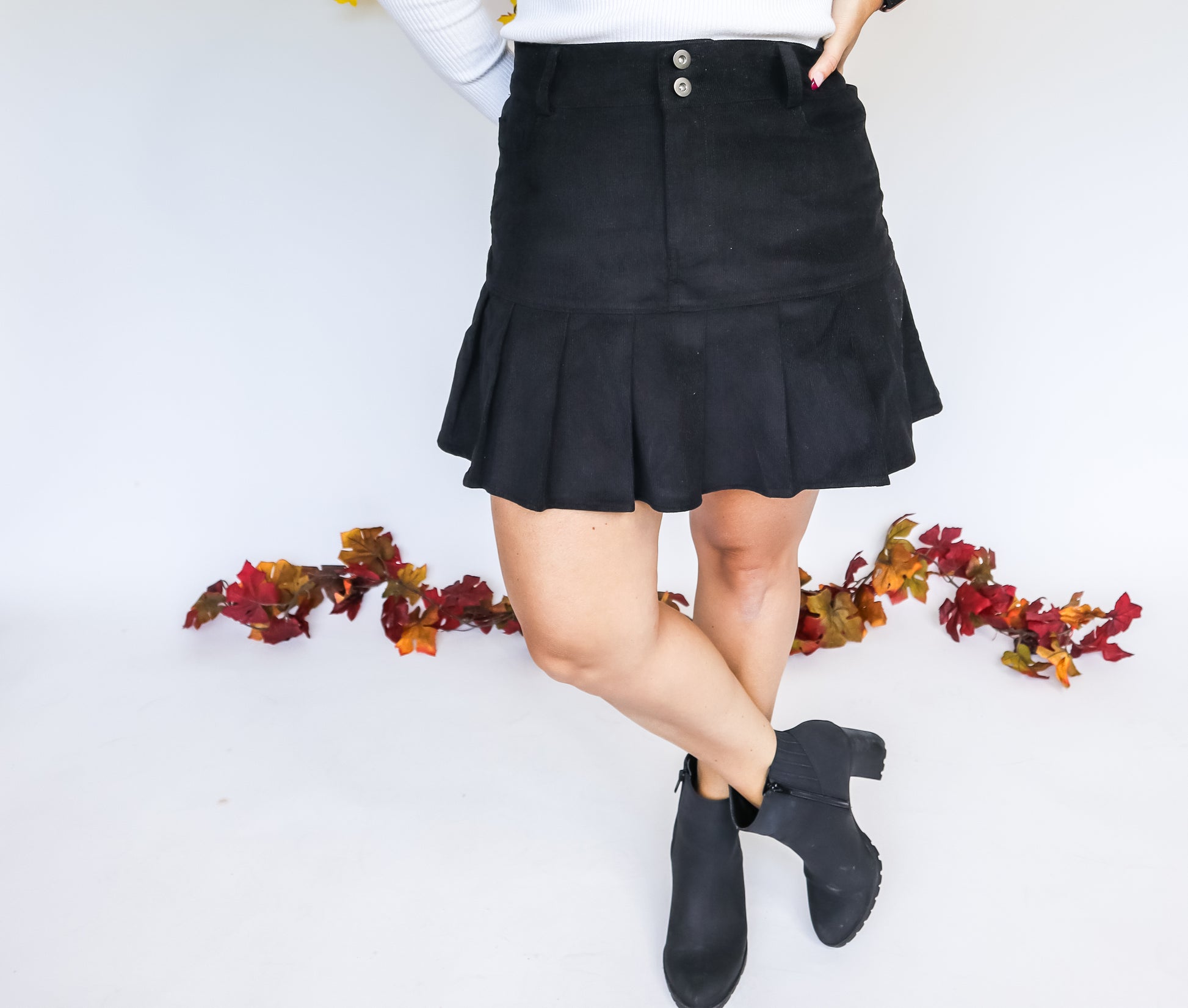 CAN'T DENY CORDUROY PLEATED SKIRT - FINAL SALE