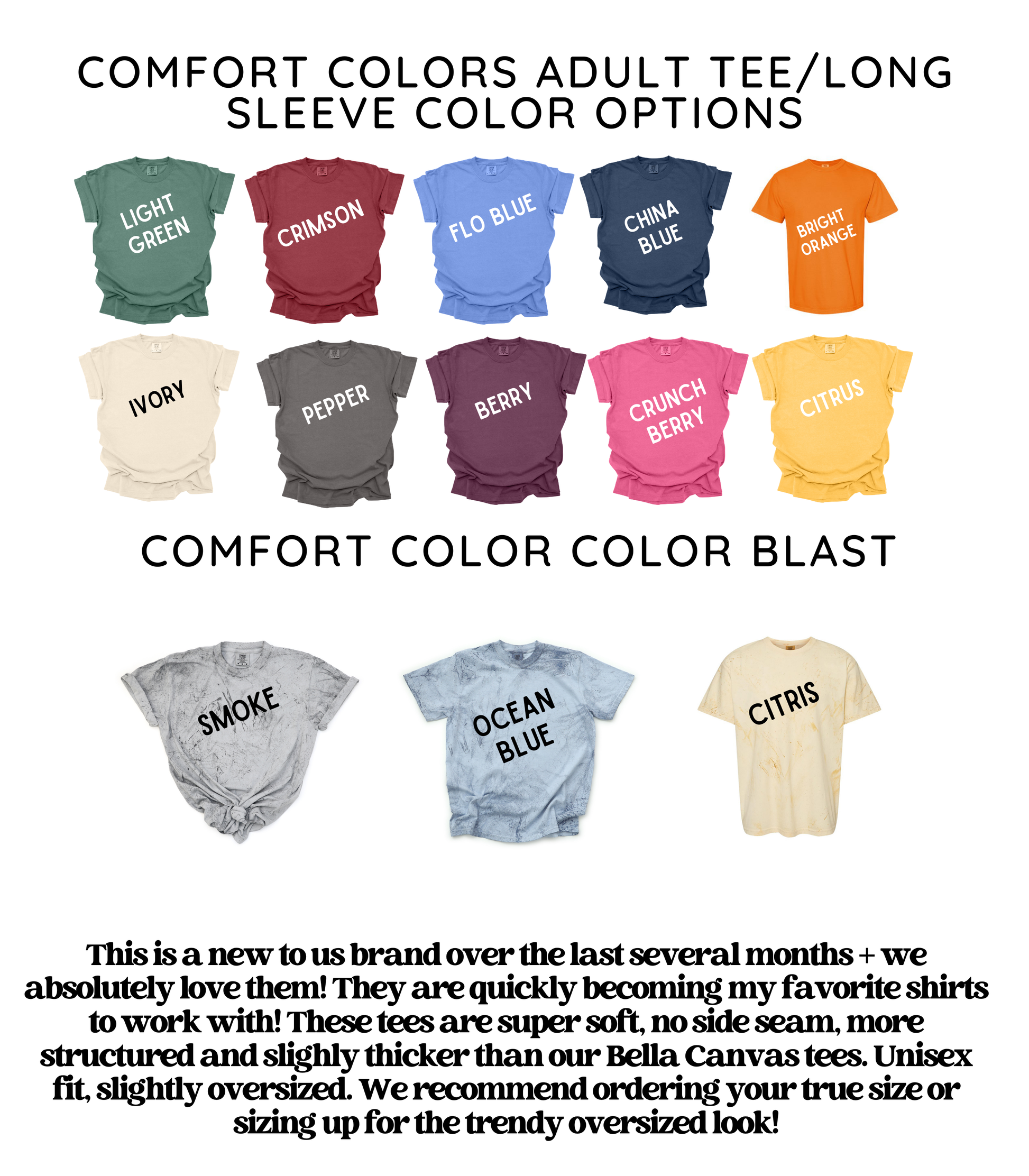 Lastly, the P+J OG our Bella Canvas tees! Super soft, slightly thinner than Comfort. True to size or size up for a trendy oversized fit.