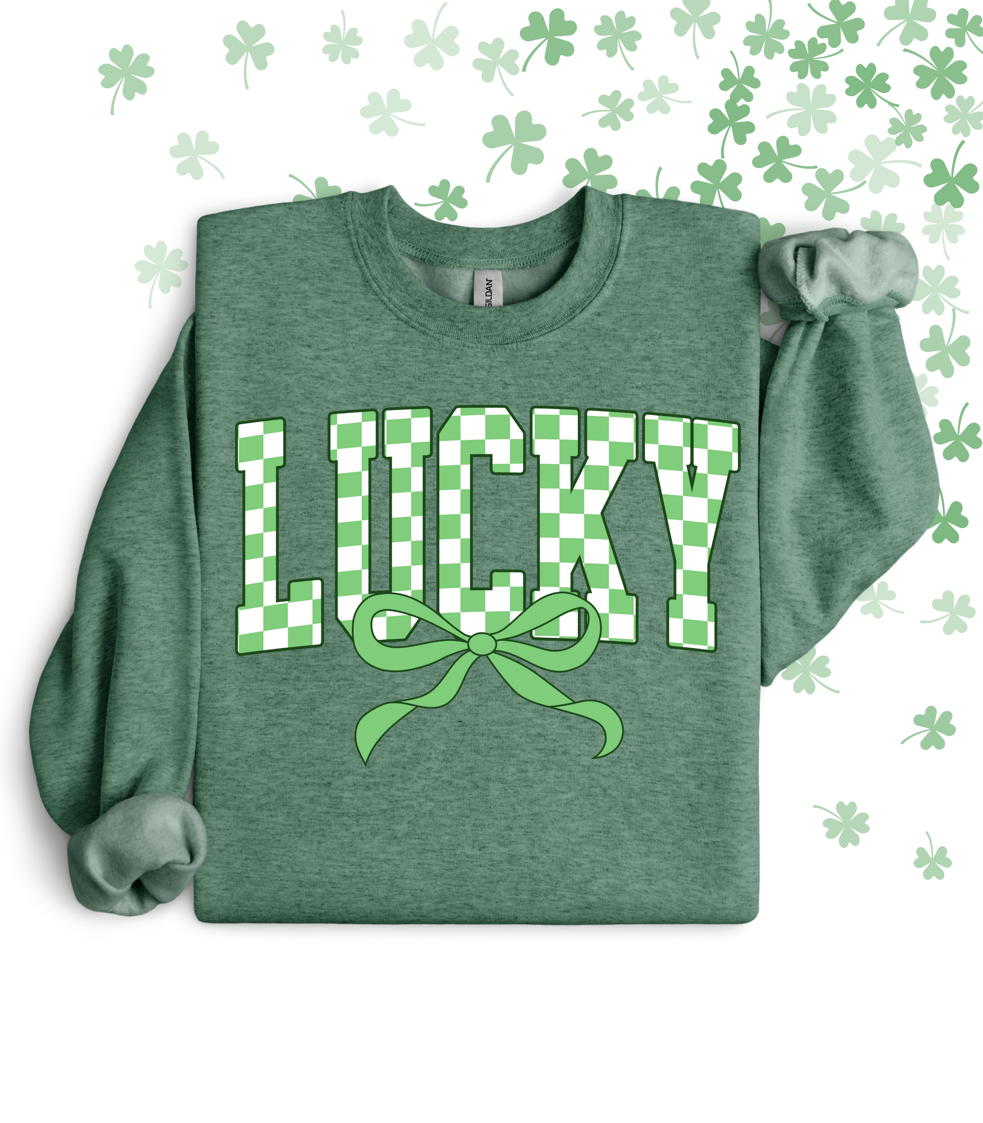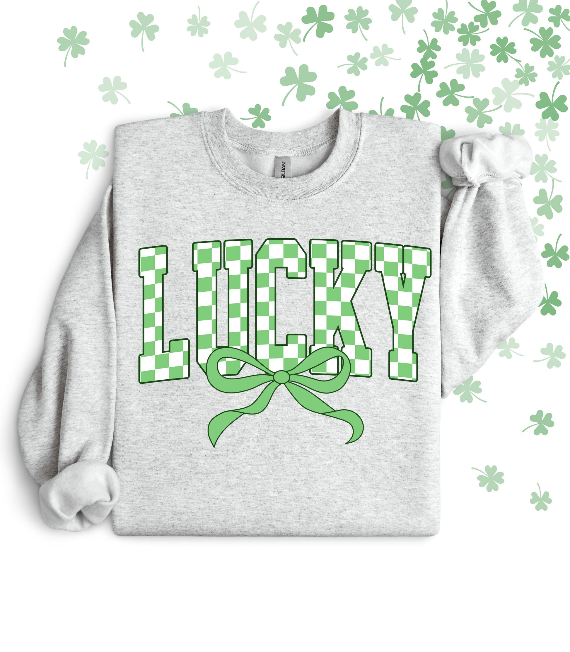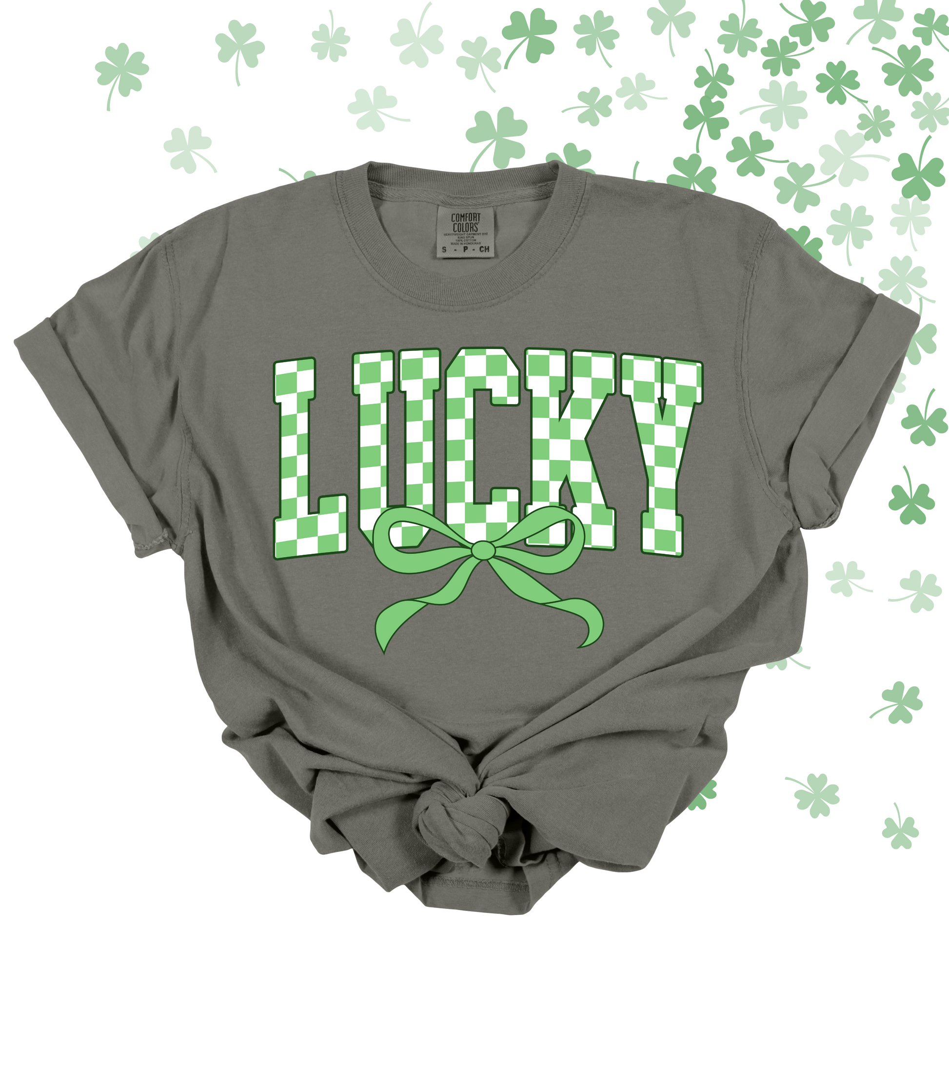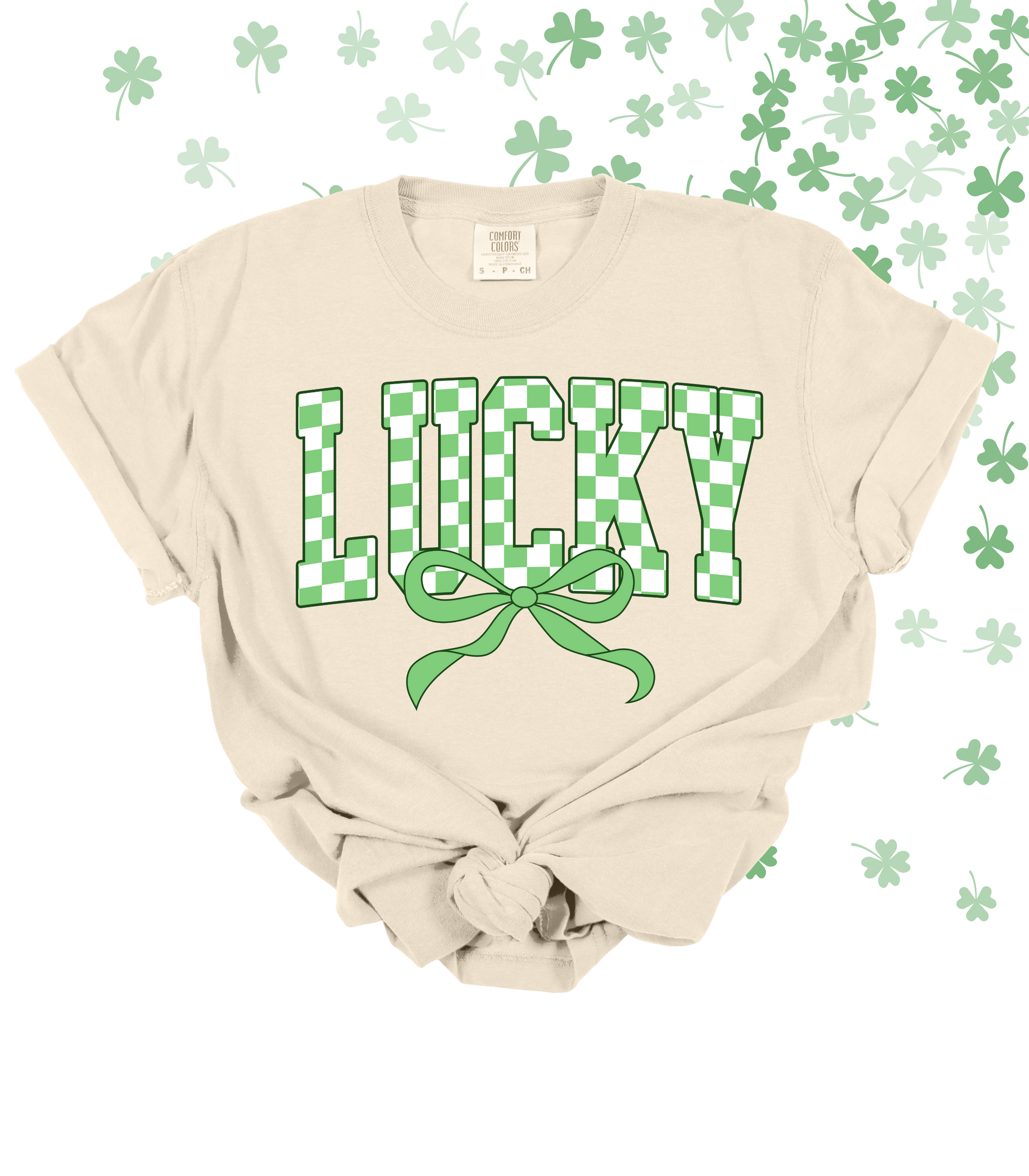CHECKERED LUCKY WITH BOW TEE/CREW