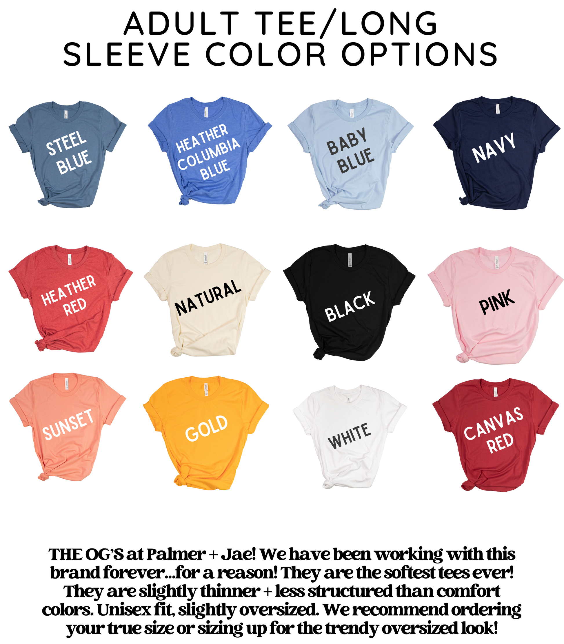 Lastly, the P+J OG our Bella Canvas tees! Super soft, slightly thinner than Comfort. True to size or size up for a trendy oversized fit.