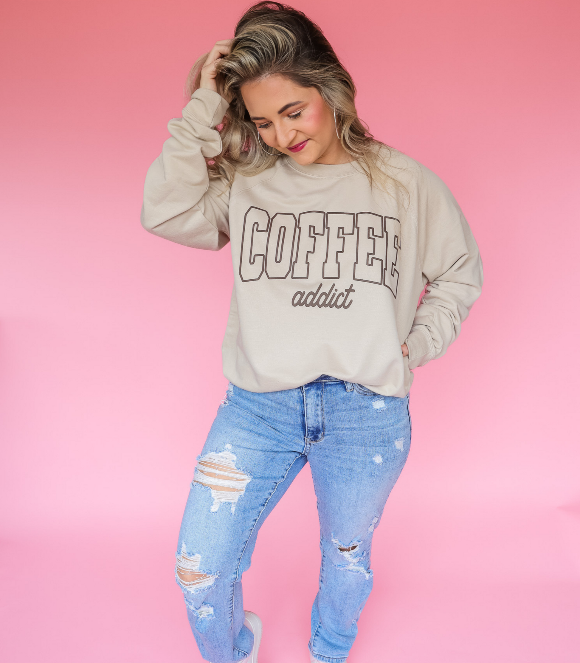 COFFEE ADDICT BROWN PUFF PRINT - TUESDAY TEES