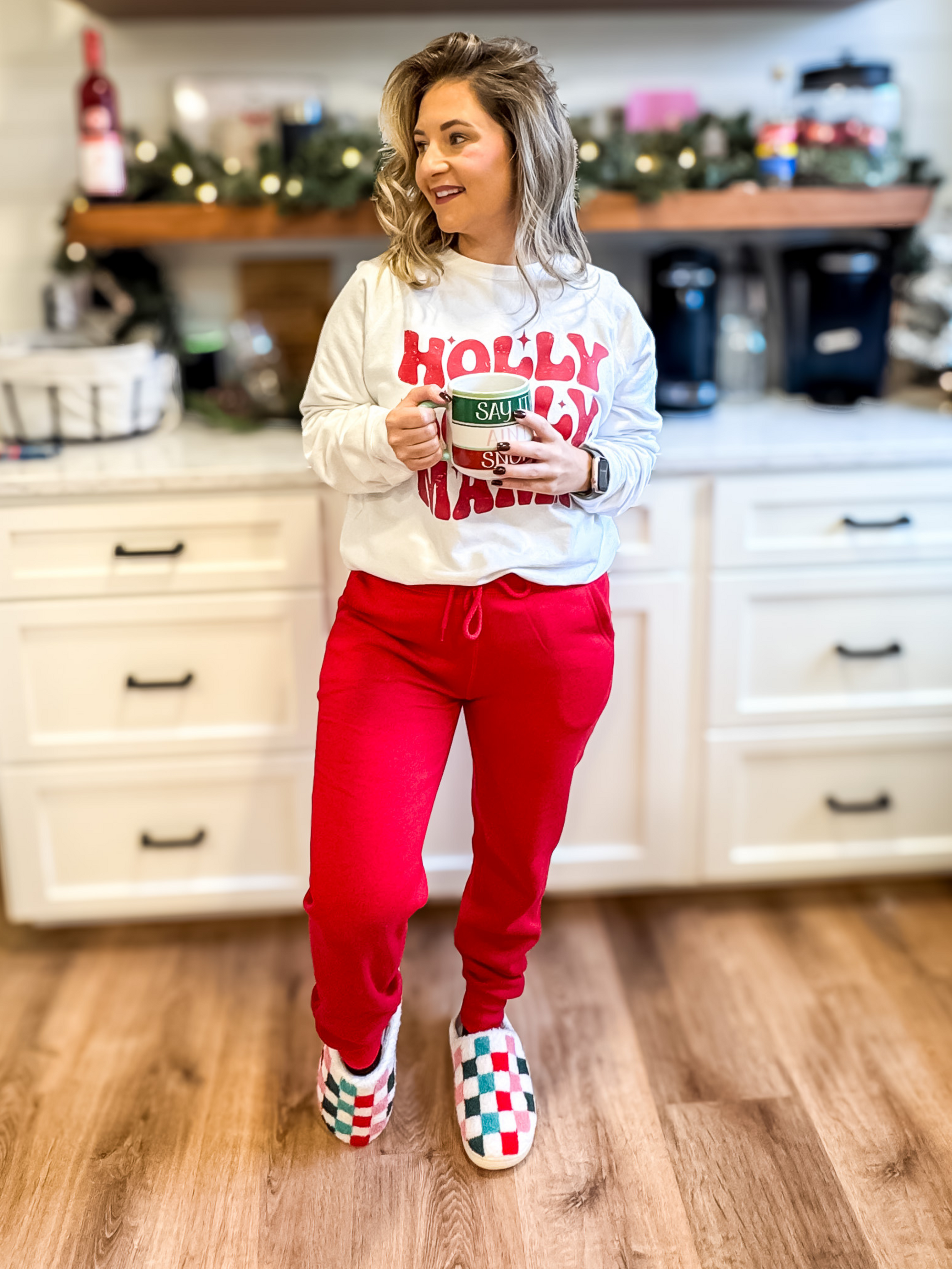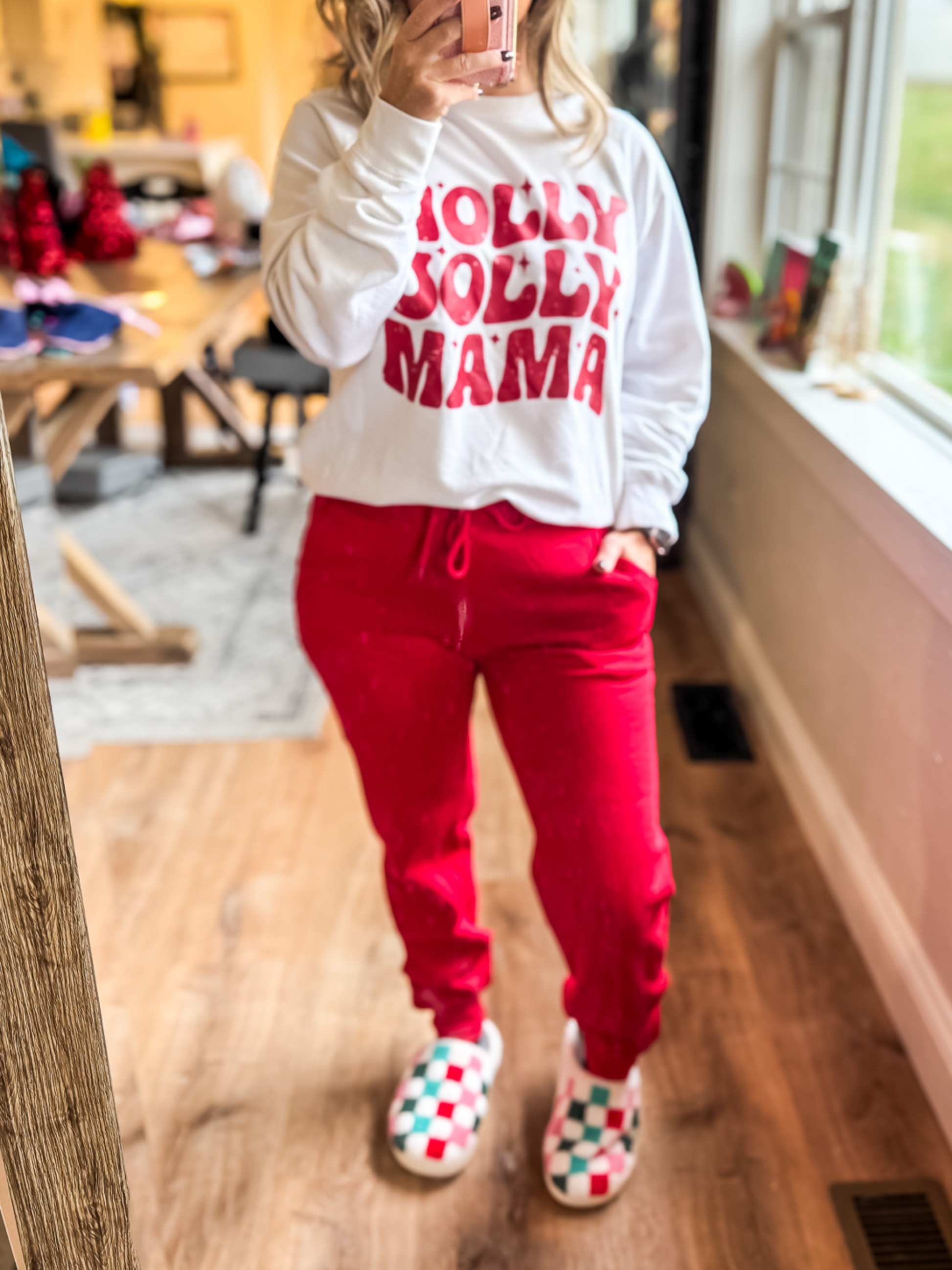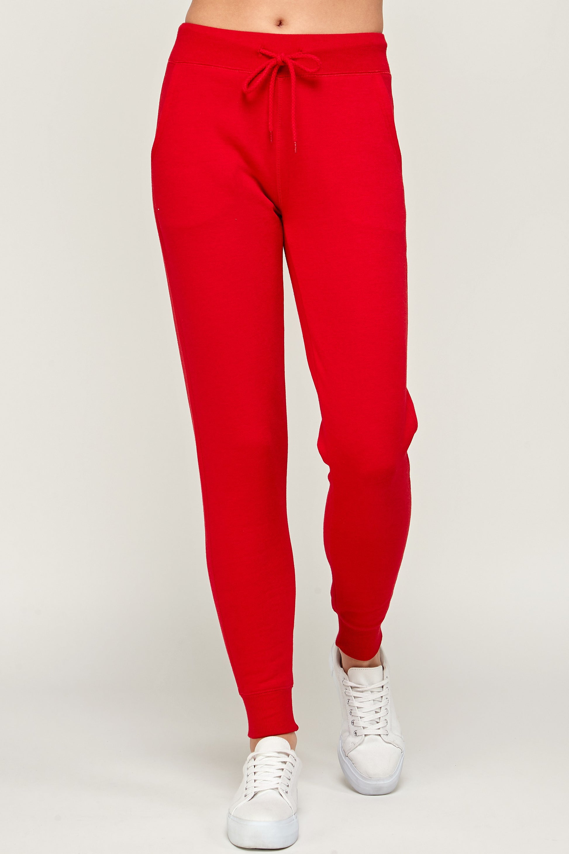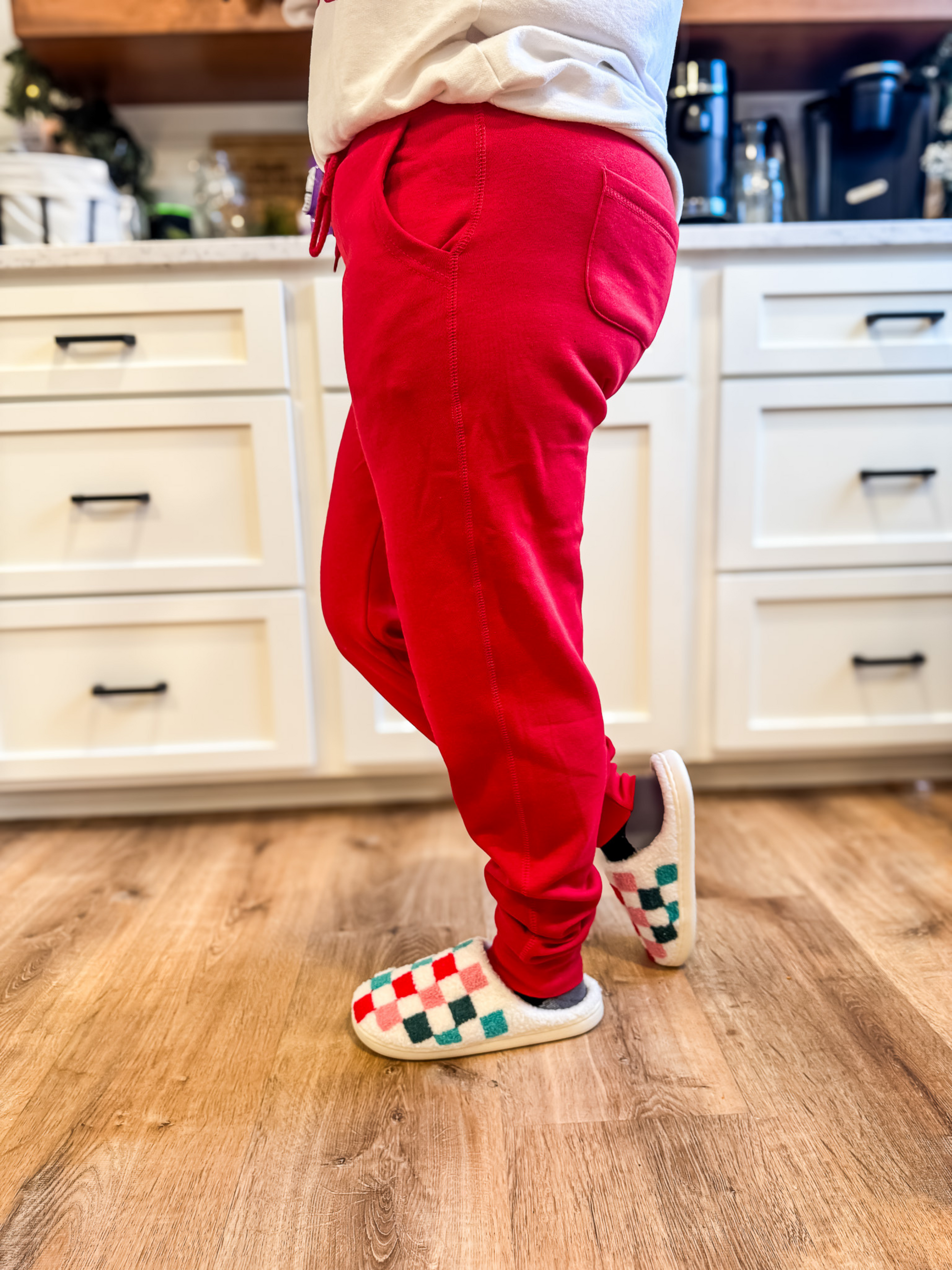 COZY UP CHRISTMAS BASIC FLEECE JOGGERS - RED - FINAL SALE