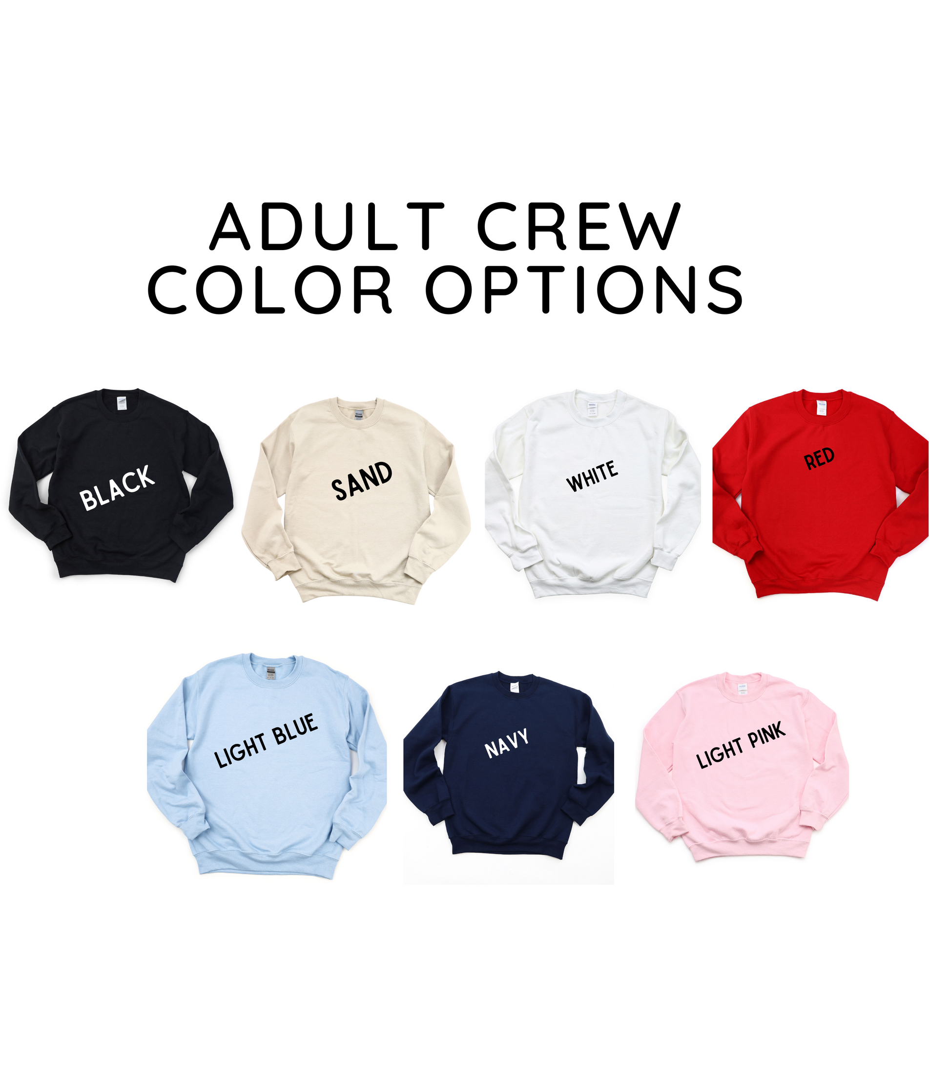 Our adult basic crews are regular unisex crew neck fleece sweatshirts. Both the crews and the hoodies will run slightly larger than normal women's sizes. We recommend ordering your normal size or size up for an oversized look!