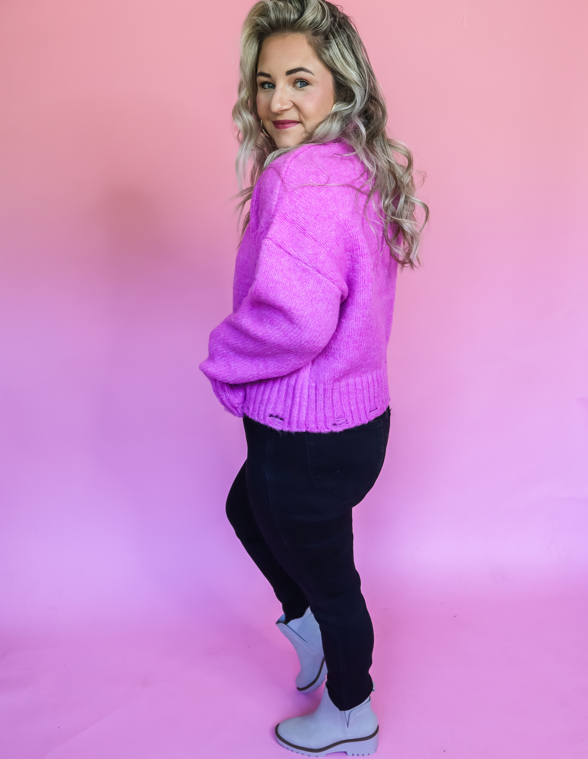 ENDLESS LOVE MOCK NECK PINK DISTRESSED SWEATER - FINAL SALE