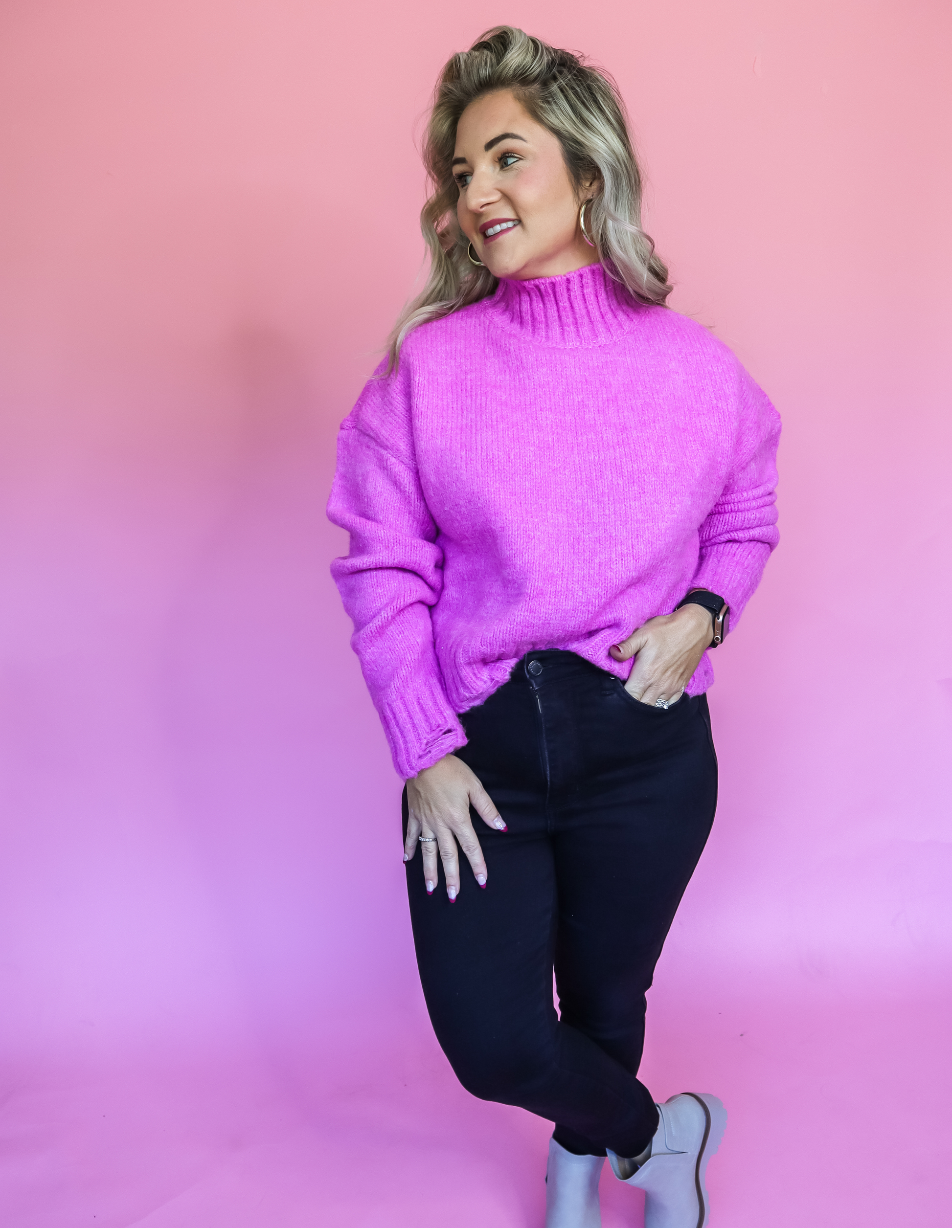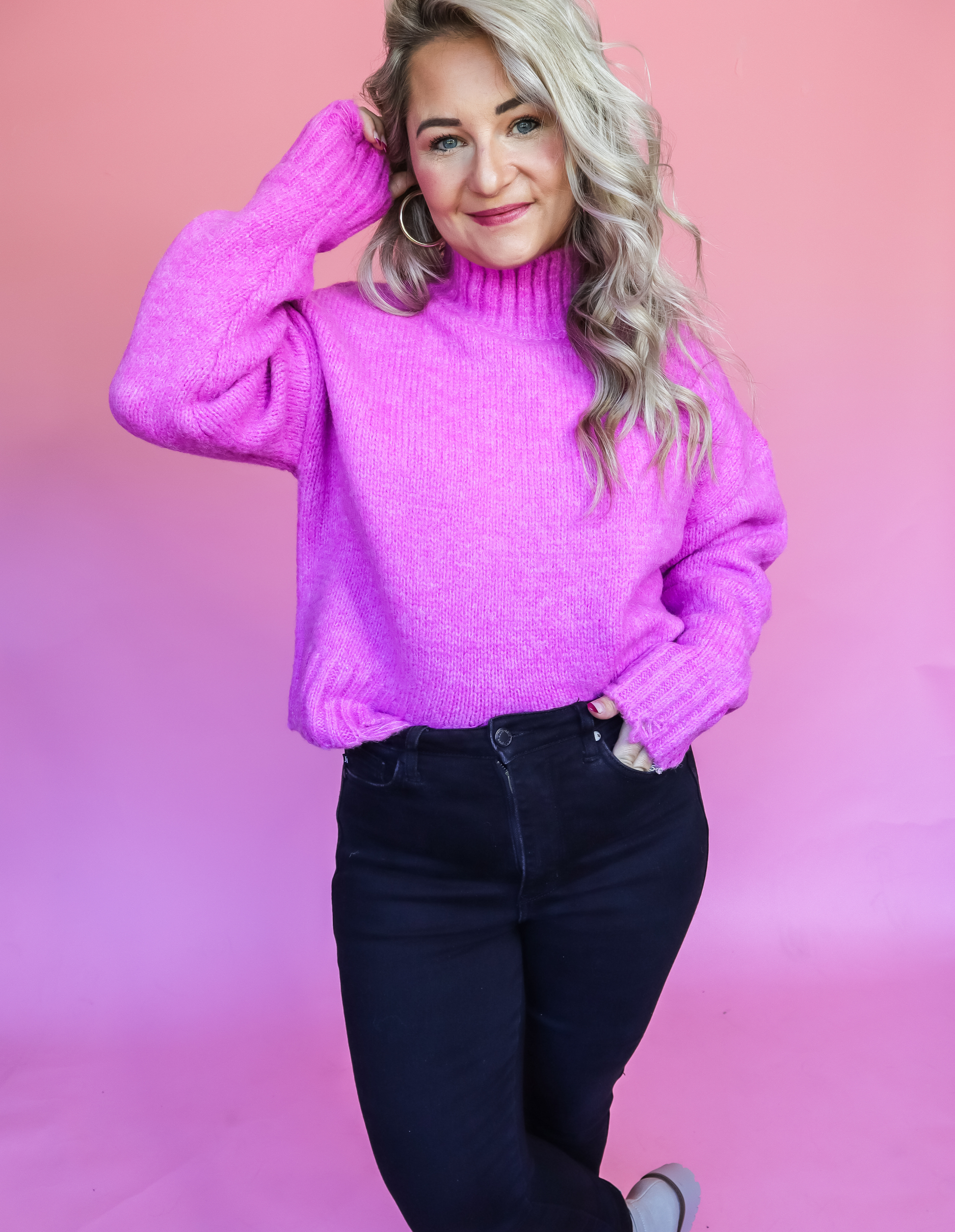- Mock neck sweater