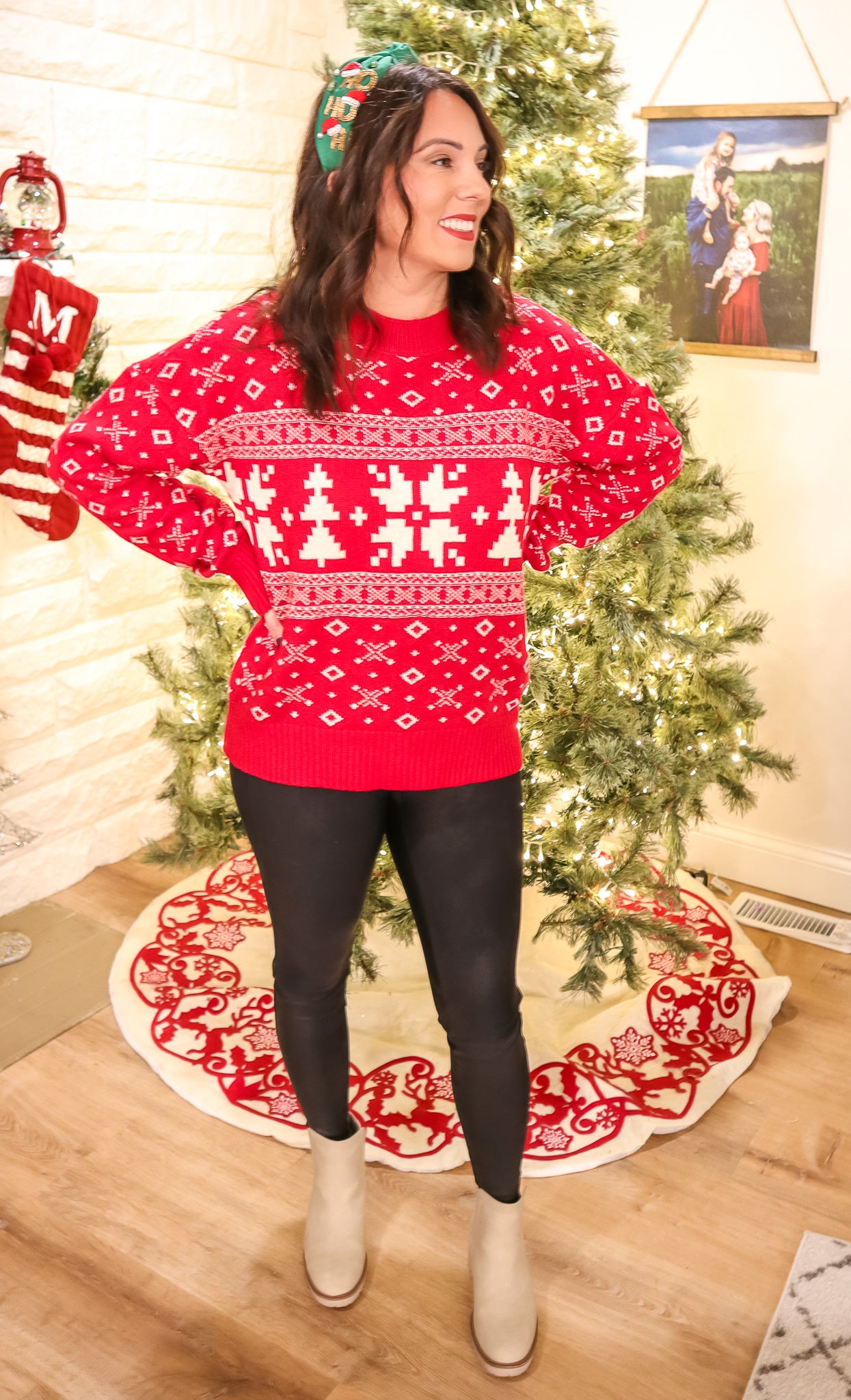 Get ready for the holiday season in our FESTIVE IN RED SWEATER! With its relaxed fit and legging length, this sweater is both comfortable and trendy. Perfect for any festive occasion, get ready to spread joy and cheer in this must-have sweater!
