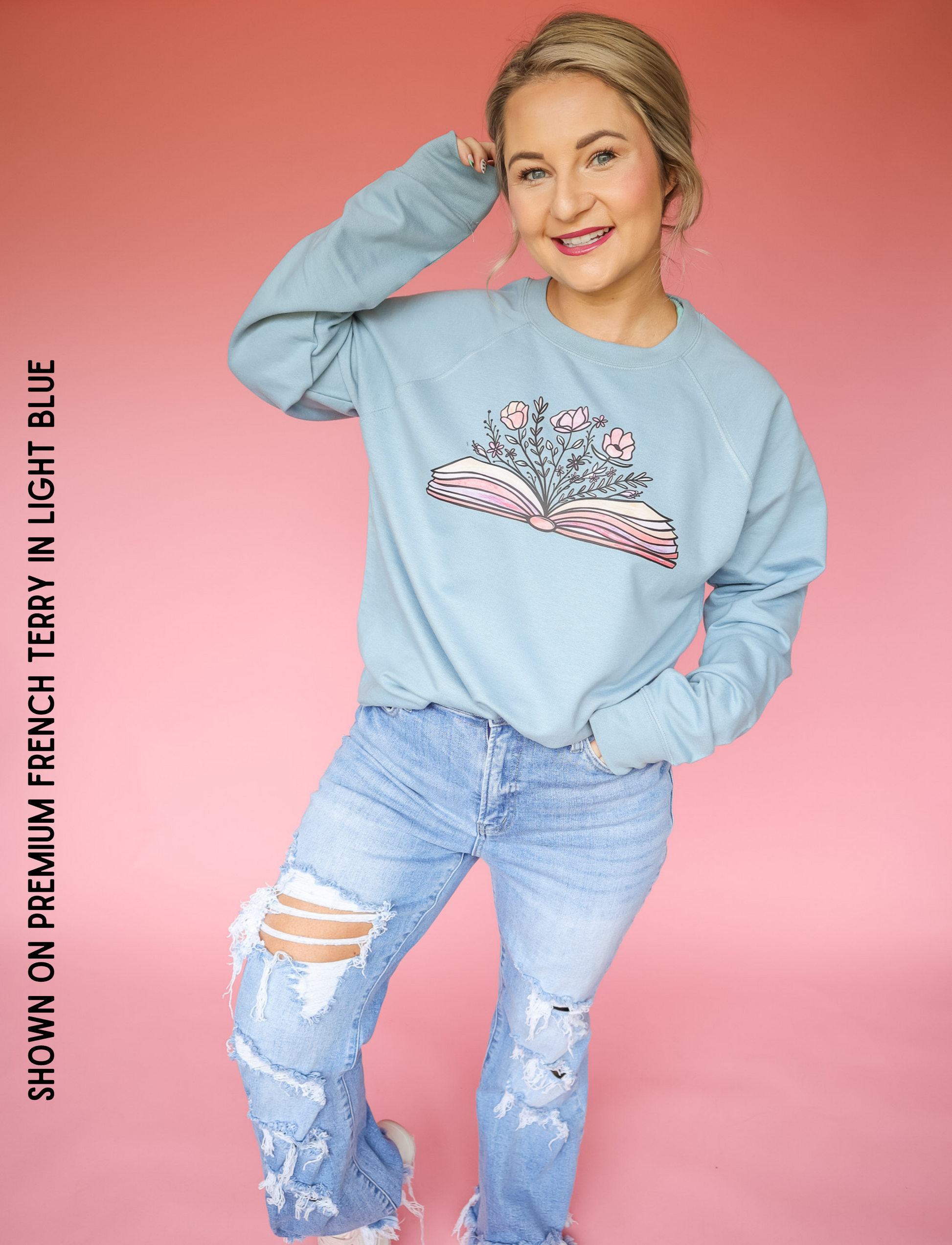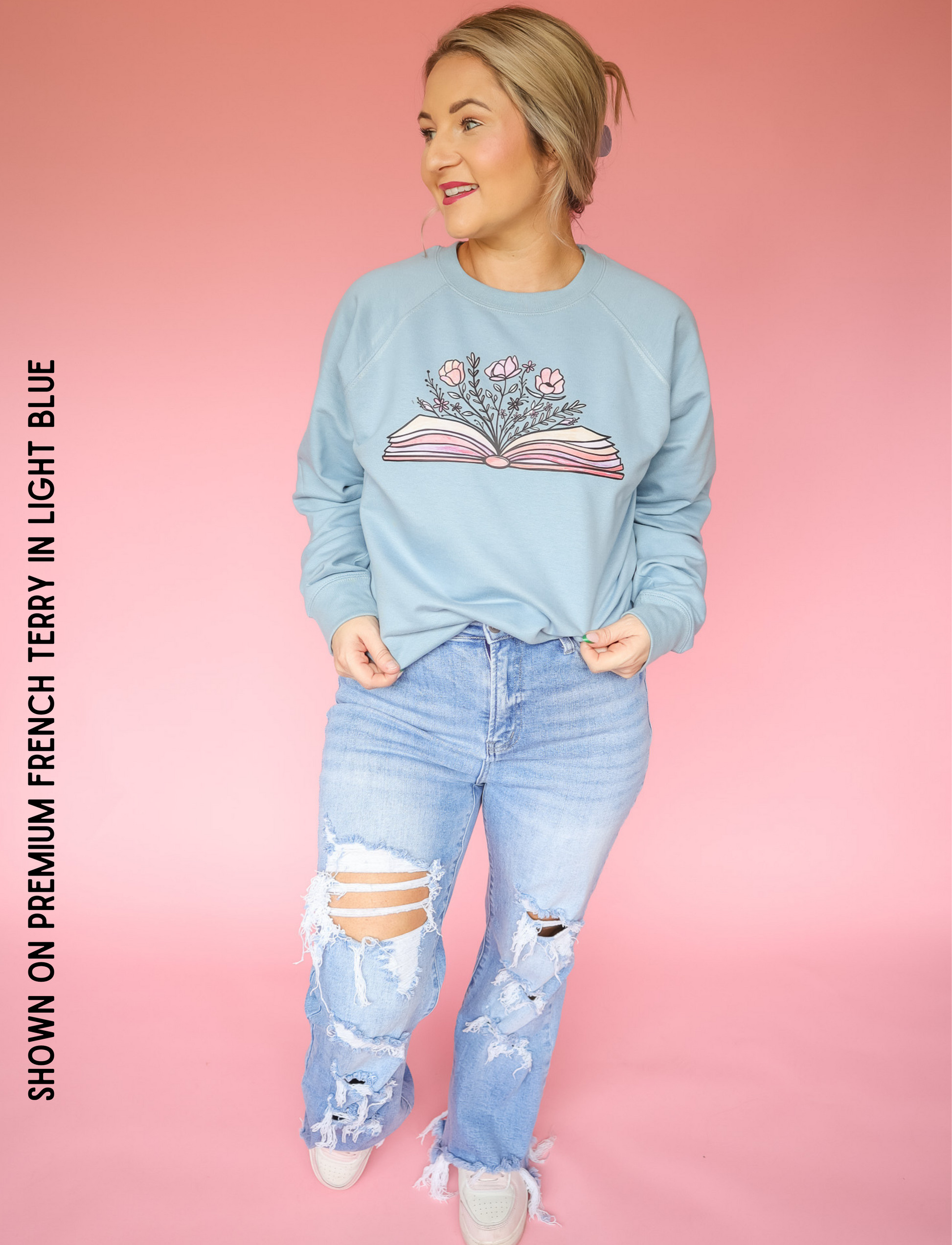 Our Premium French Terry Crew. This fab crew brings together the best of both worlds, with a luxe French terry fit that's the perfect balance between fleece and long sleeve tee. Get ready to lounge in style, with legging length coverage and a unisex fit that we suggest sizing up in for the ultimate cozy experience. So comfy you won't wanna take it off!