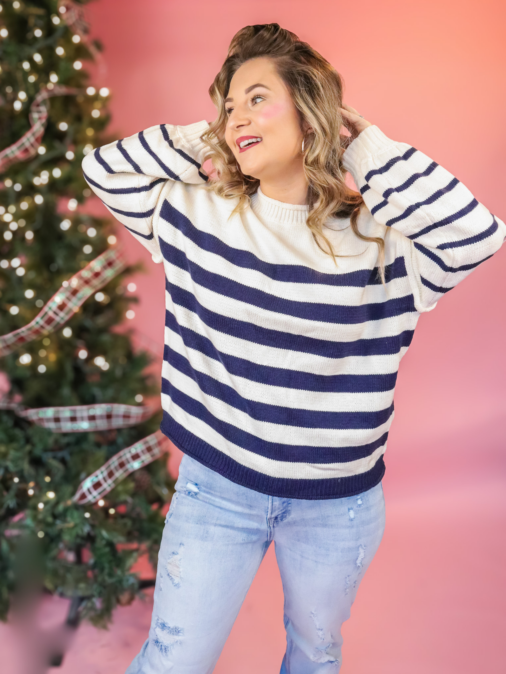 Introducing the "FOREVER WINTER" oversized navy striped sweater!!