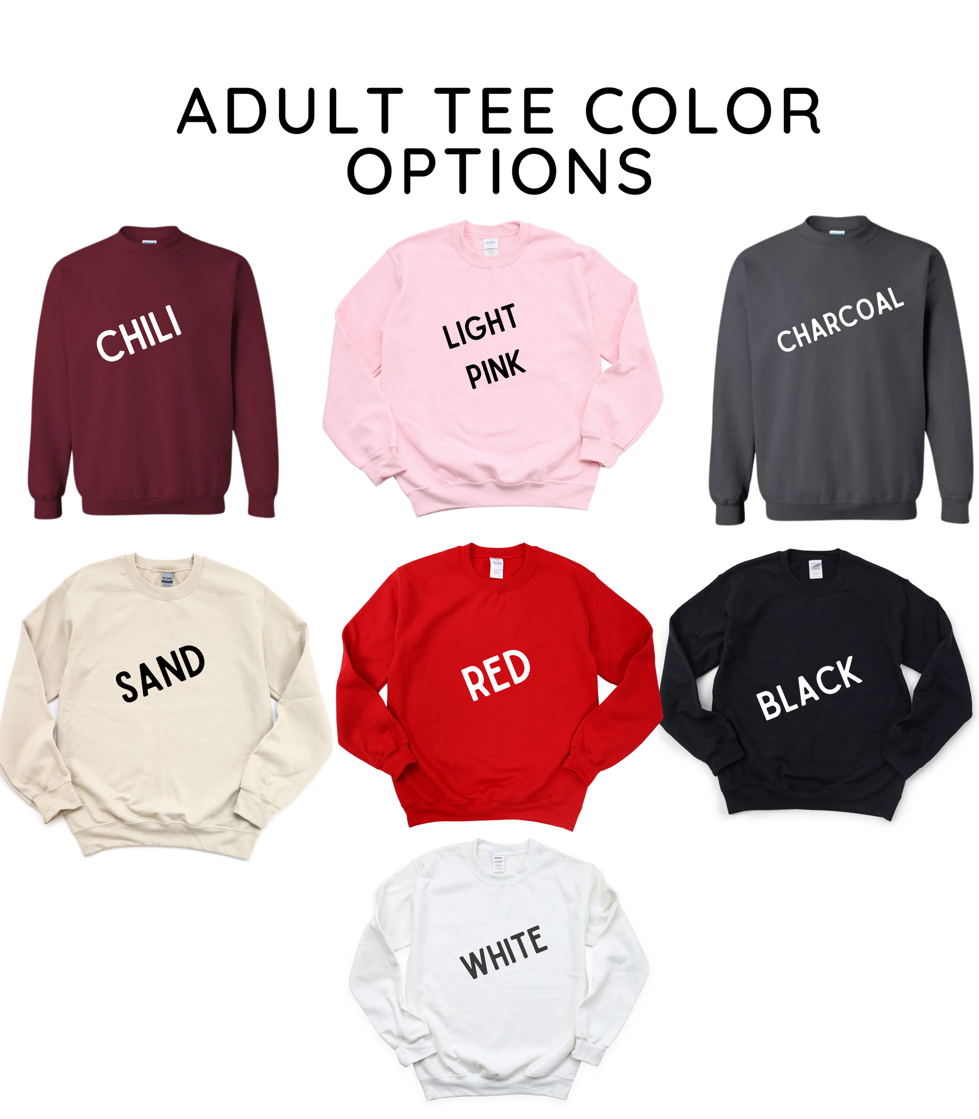 FONT/DESIGN COLOR WILL NOT CHANGE (for example...if you order a black sweatshirt with black design...it may not show up as well. Please choose your colors carefully)