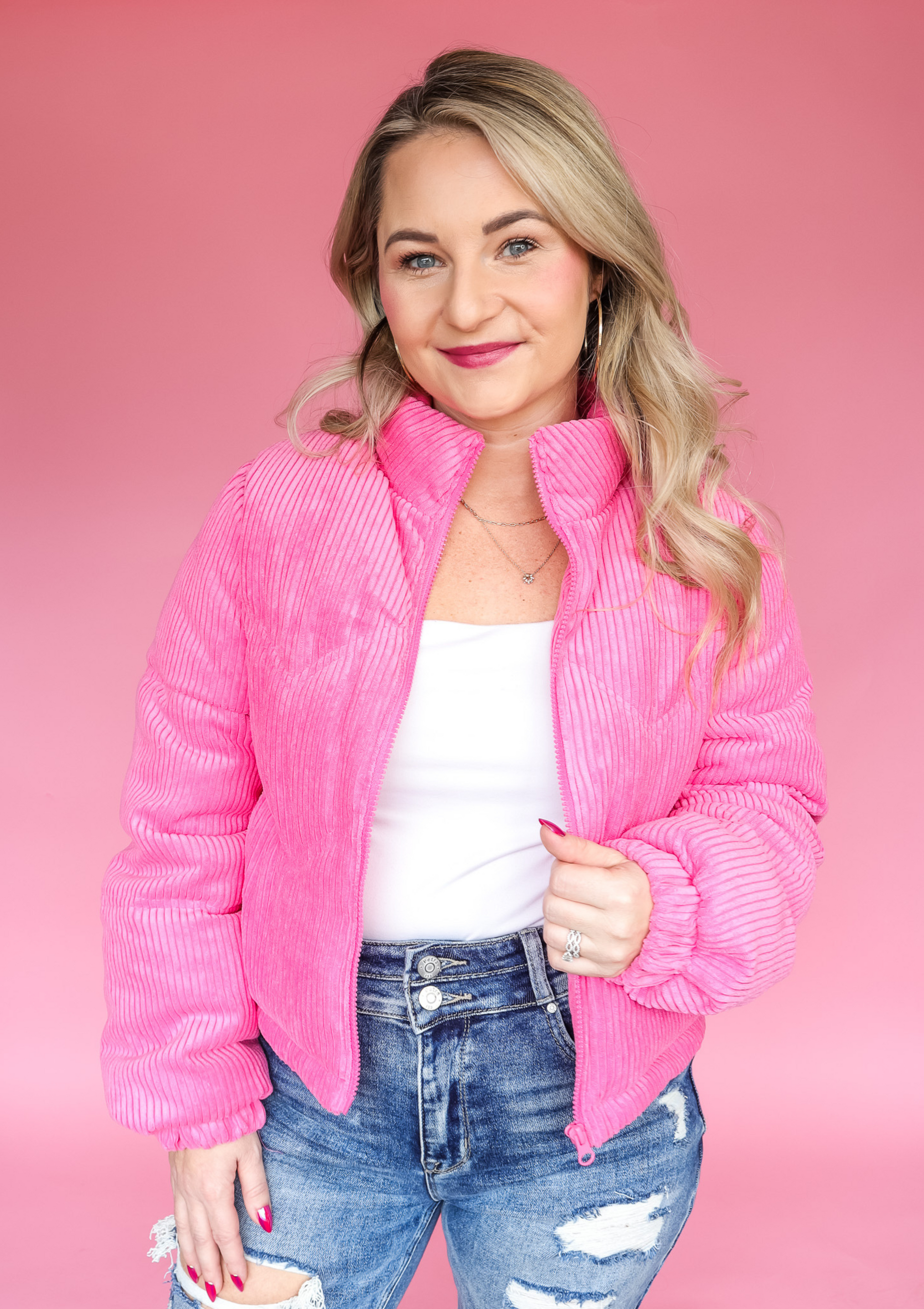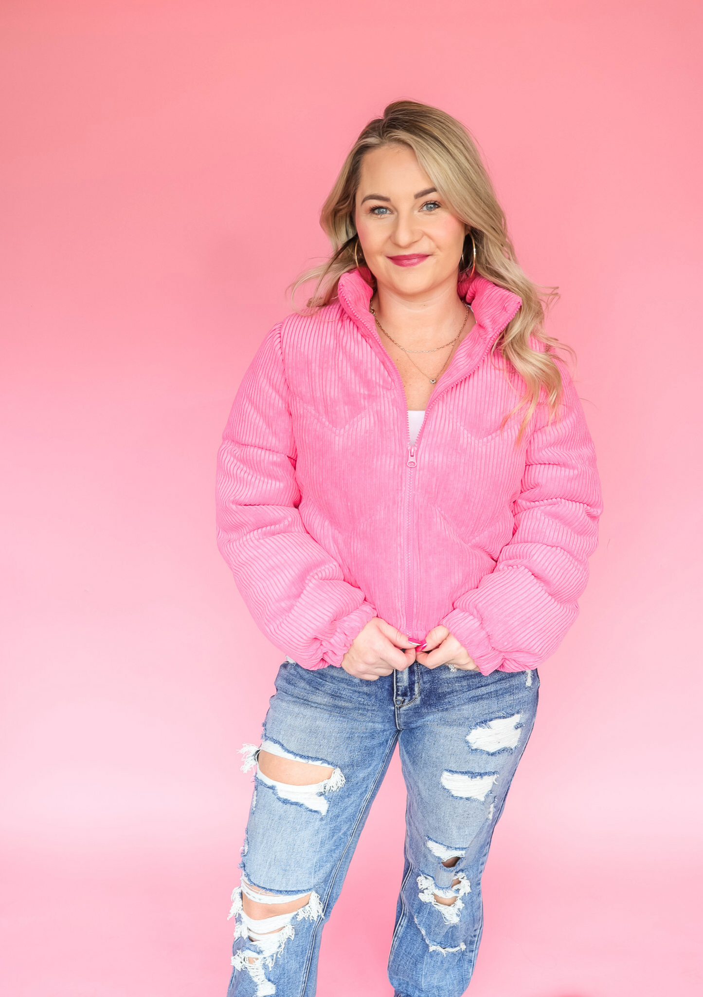 HARD TO FOCUS PINK CROP PUFFER JACKET