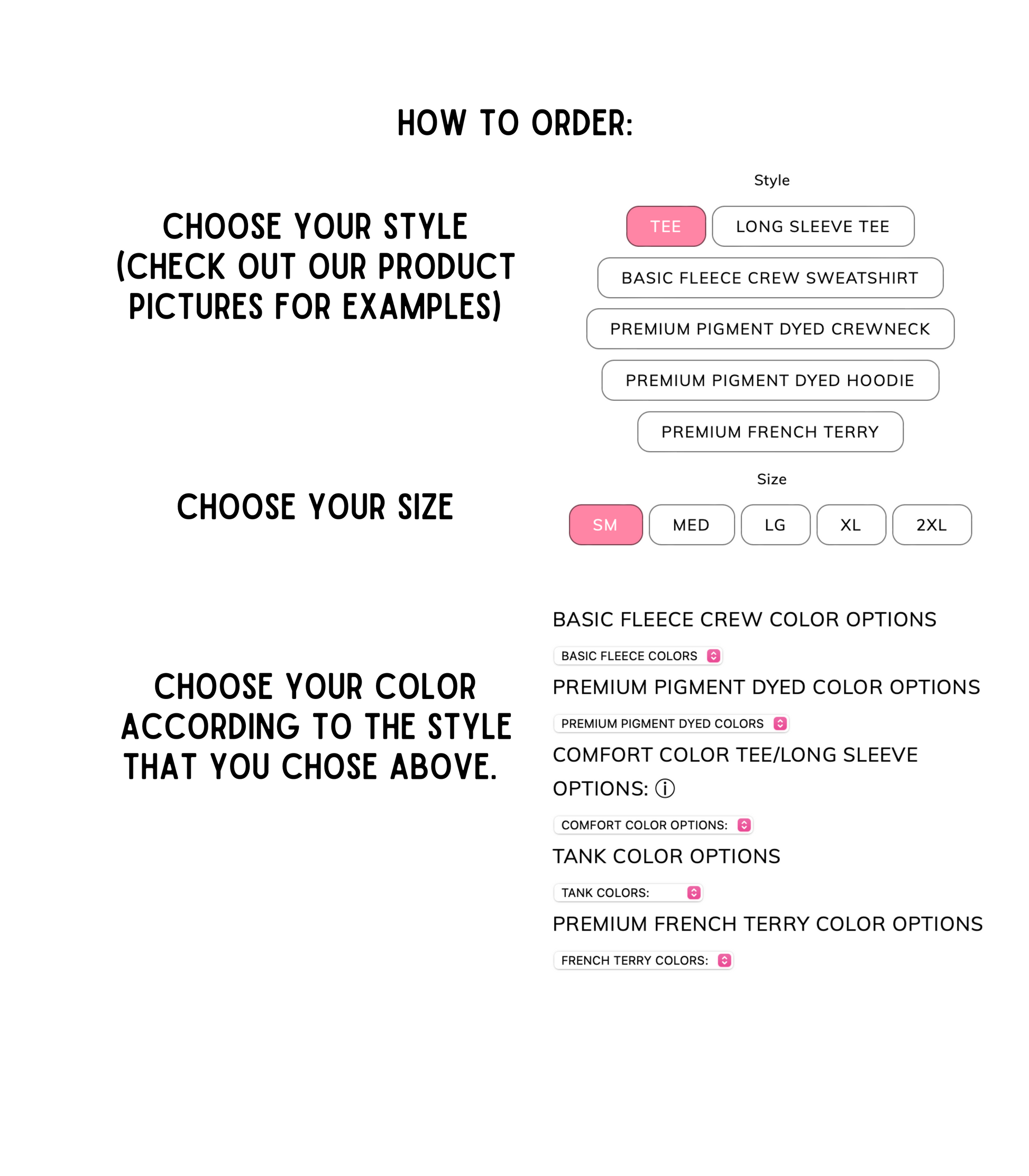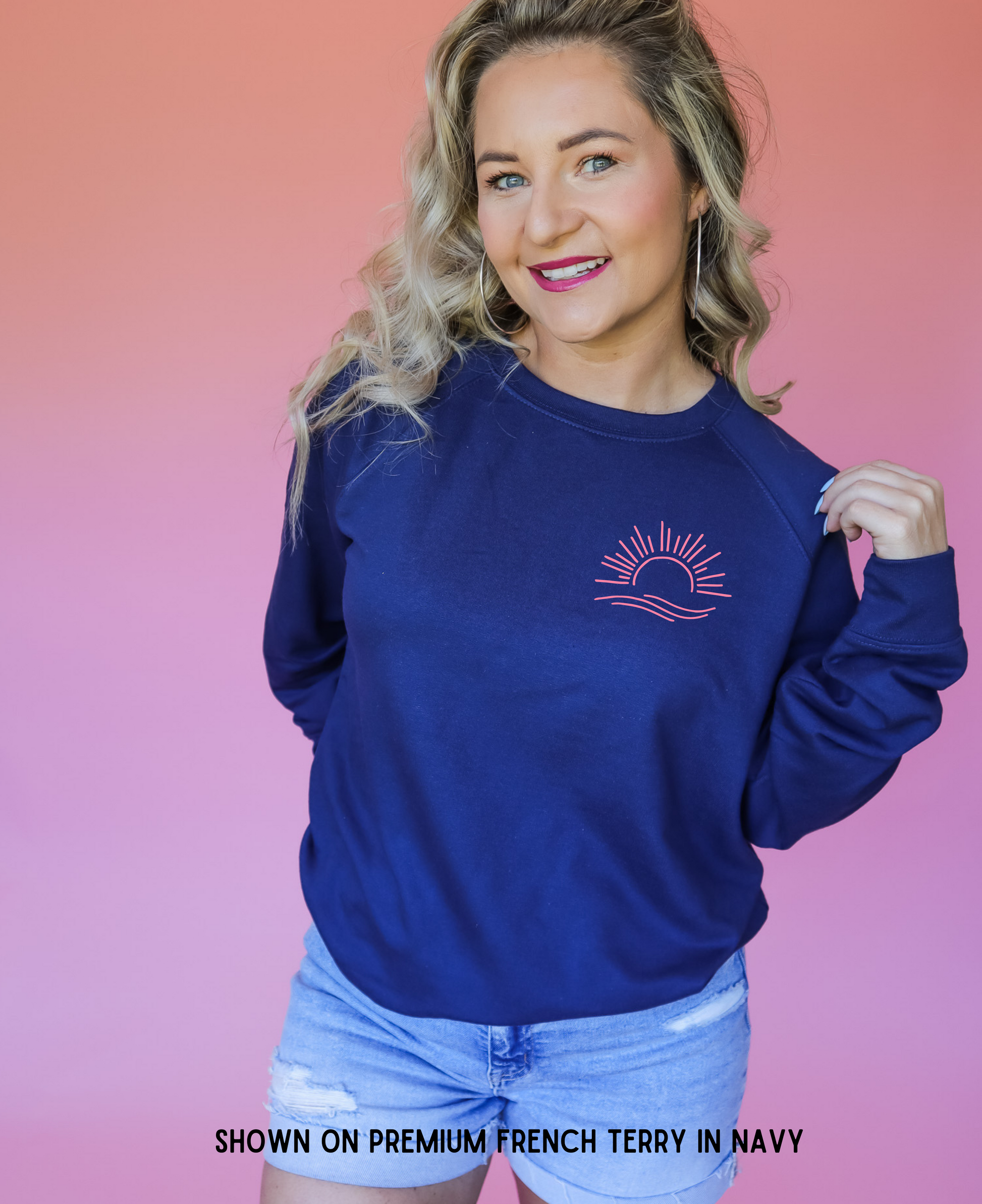Our premium crews + hoodies are NEXT LEVEL in quality and pigment dyed to ensure the most UNQIUE + brightest colors you won't see anywhere else! These are a unisex fit so they will run slightly larger + longer than typical women's sizing, we recommend order your true size or sizing up for the trendy oversized look!