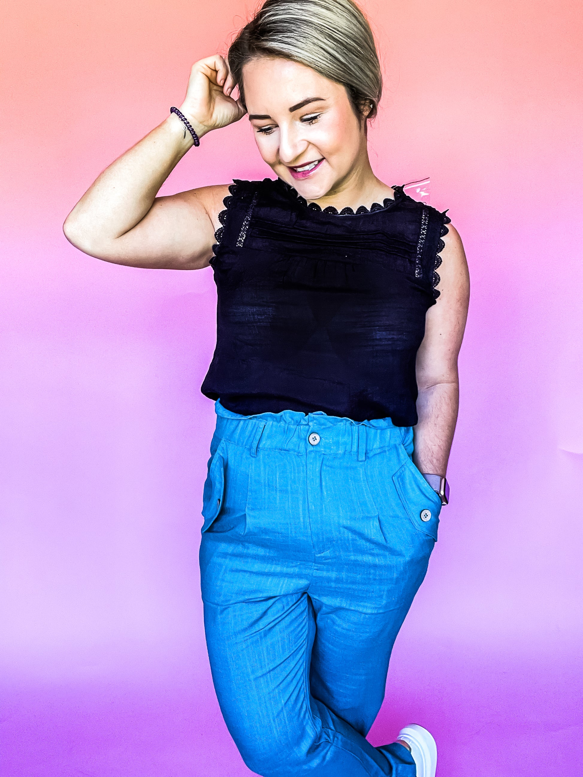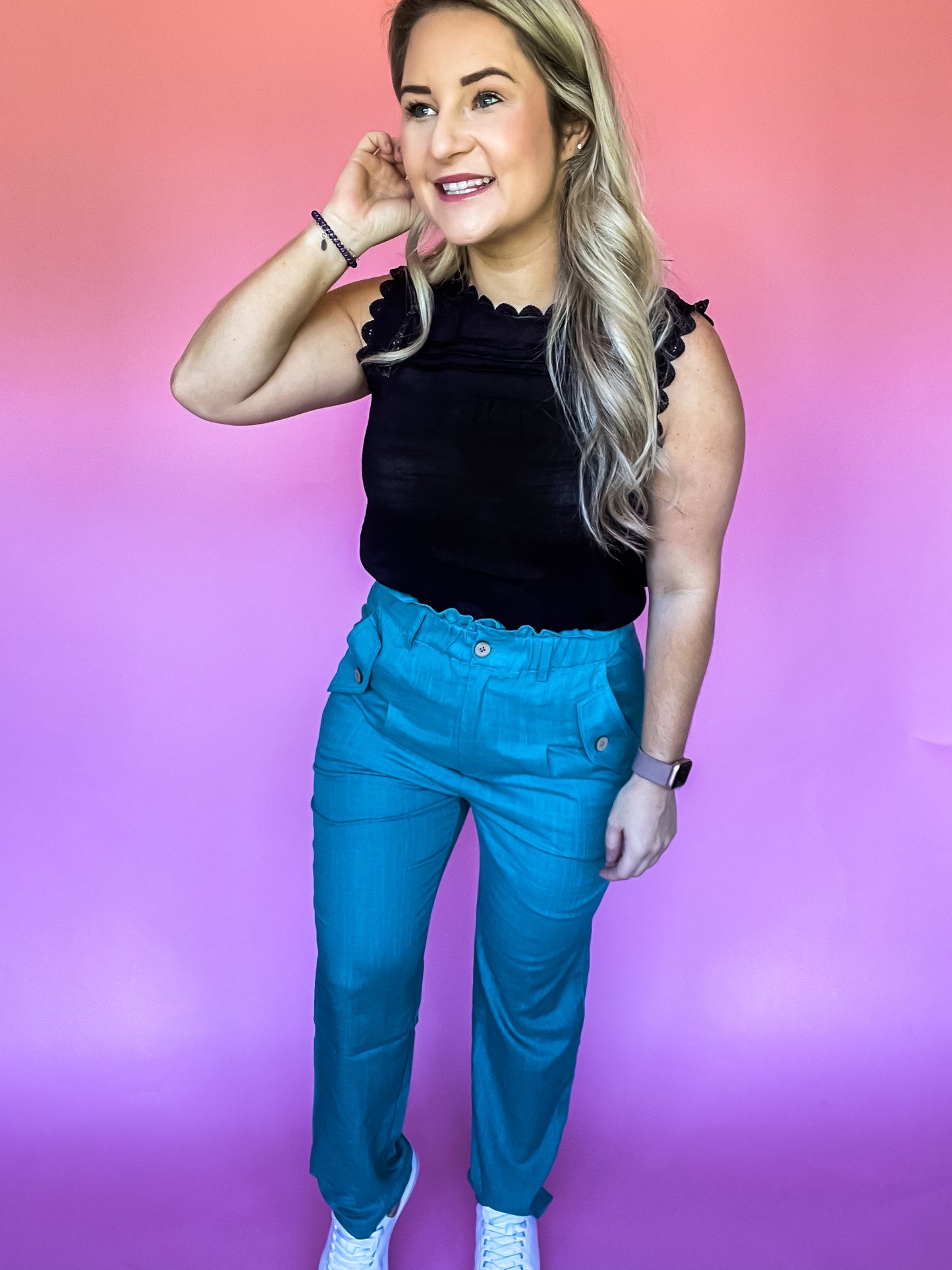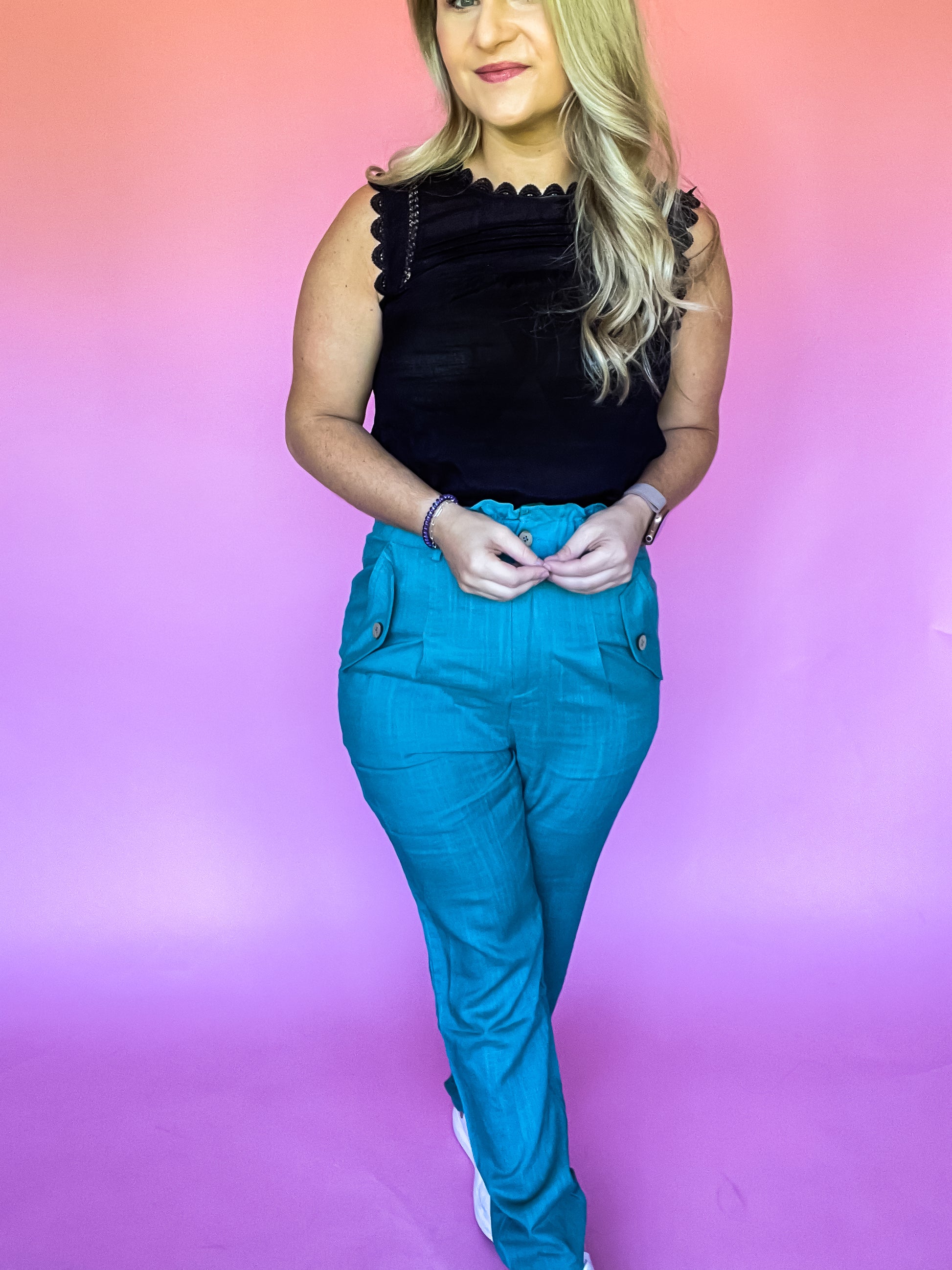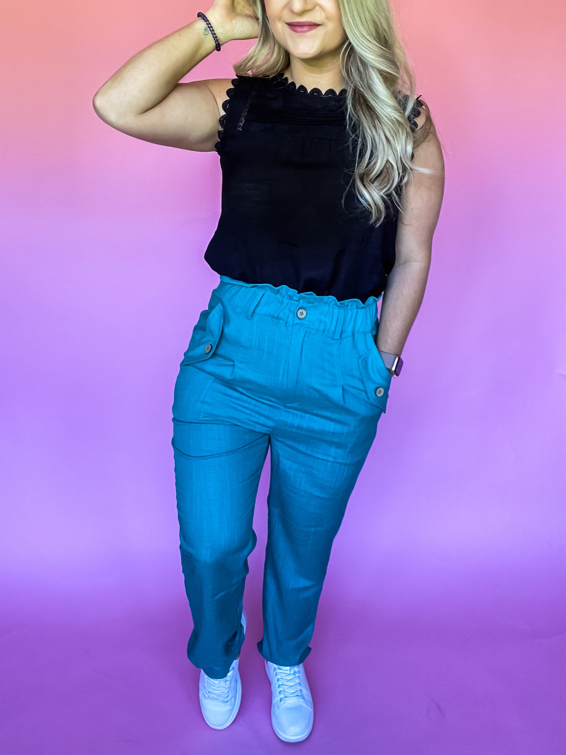 Make a statement and wish your legs well with these high-waisted, light-weight WISH YOU WELL linen pants! With their chic, flap pocket detail and frilled elastic waistband, you'll never "ruffle" any feathers. The slash style pockets and zip-up fly provide maximum convenience and detail, while the release tuck at the waist and belt loops will have you feeling tied together and ready for any occasion!