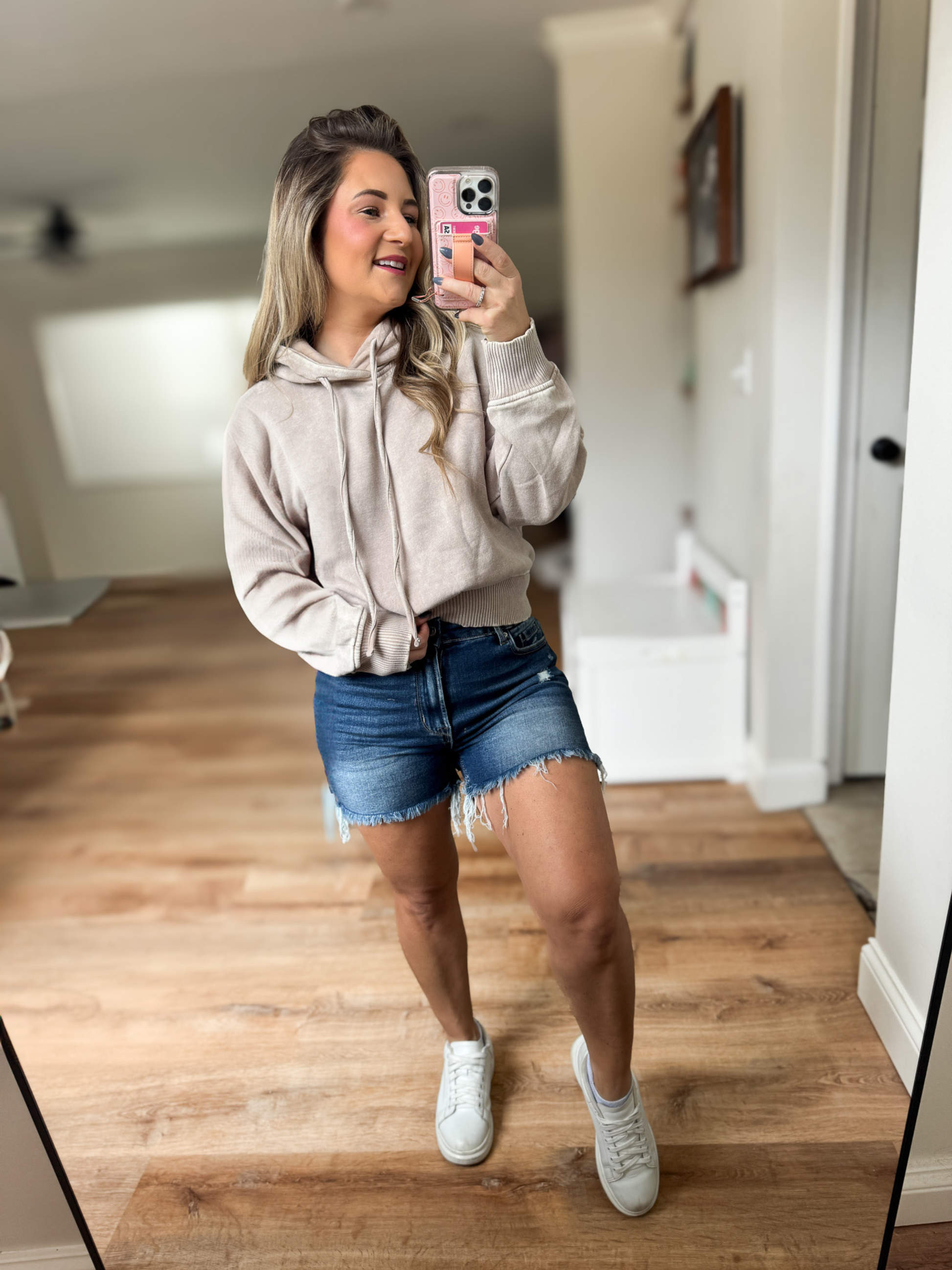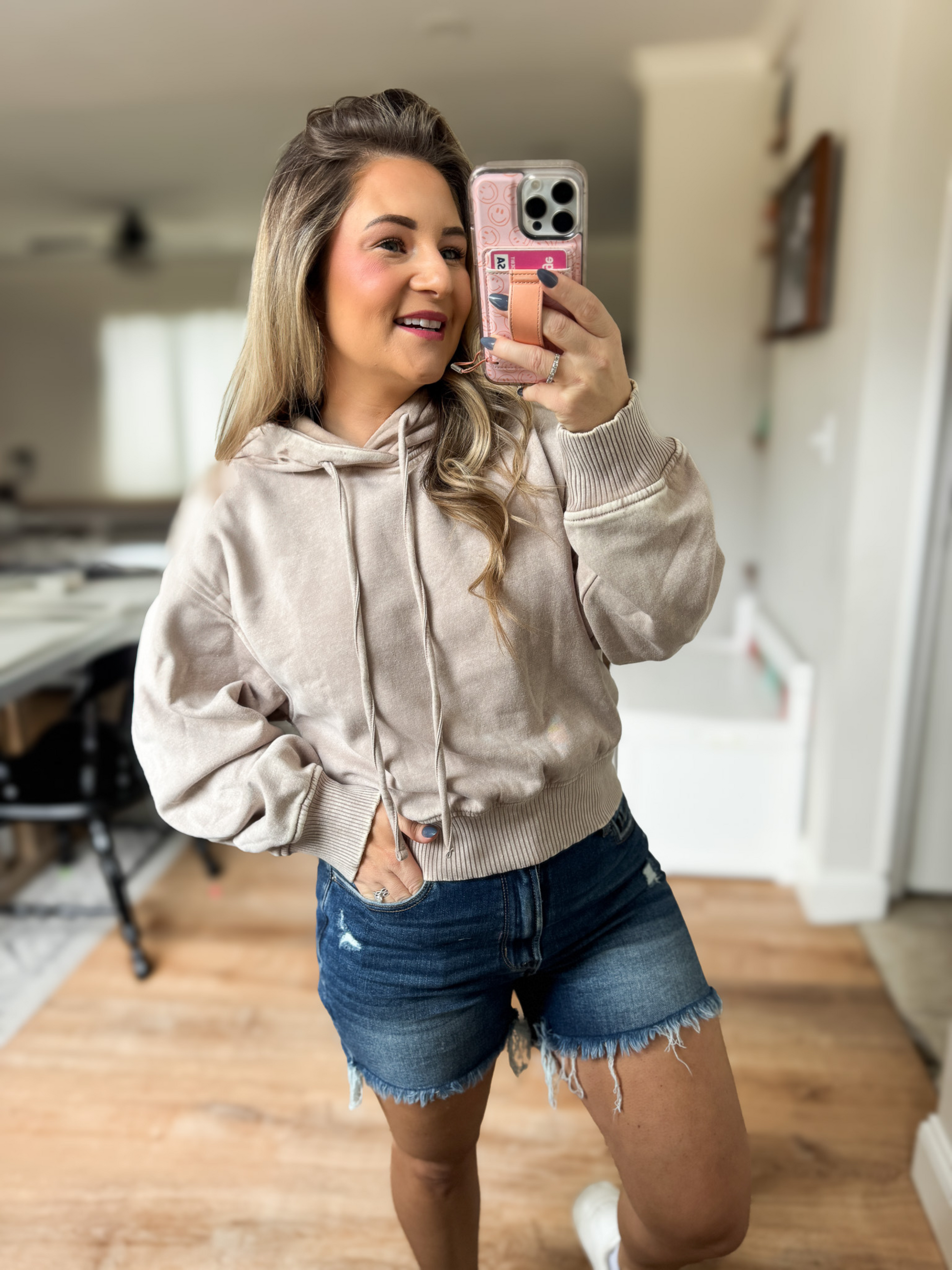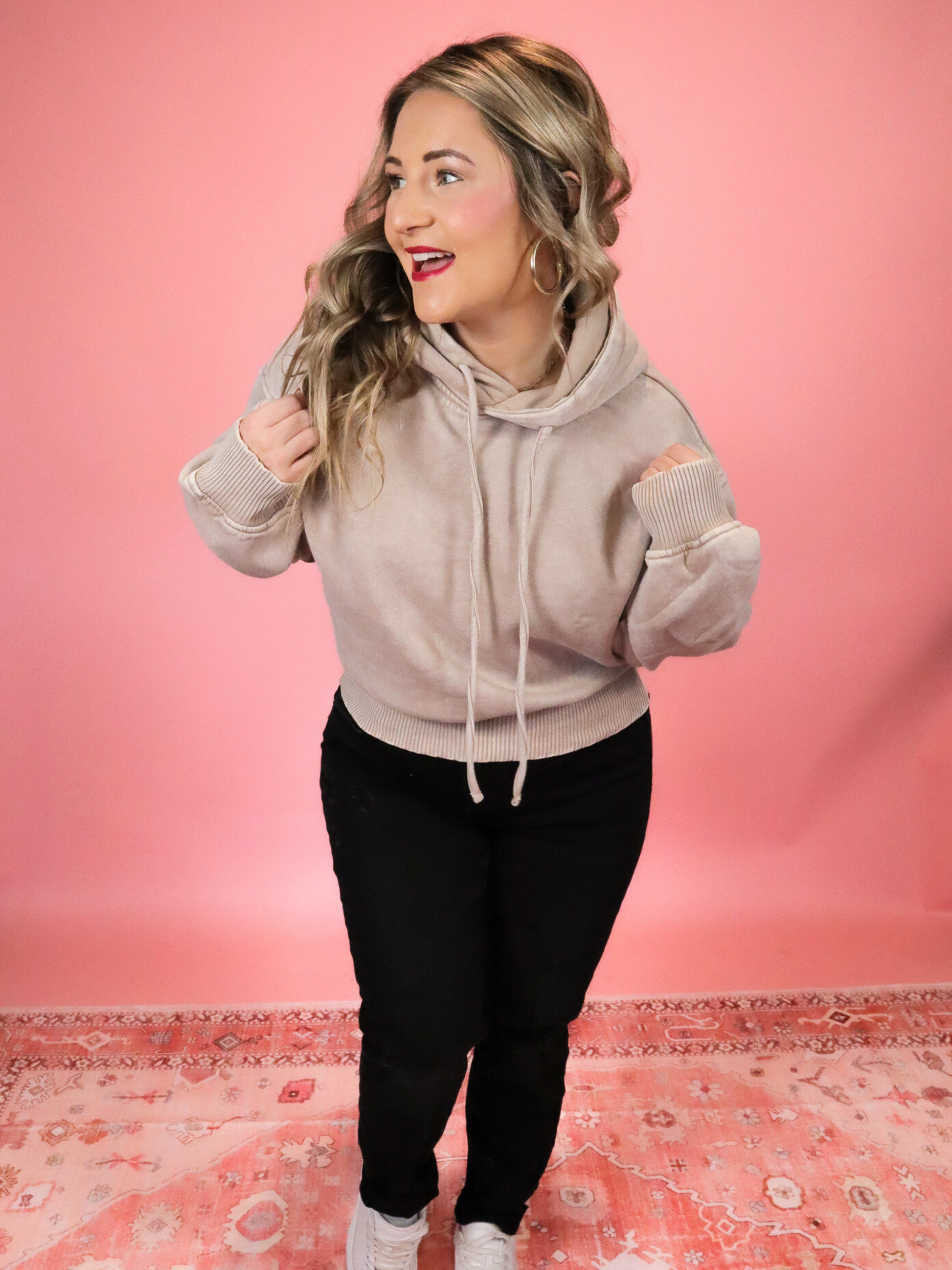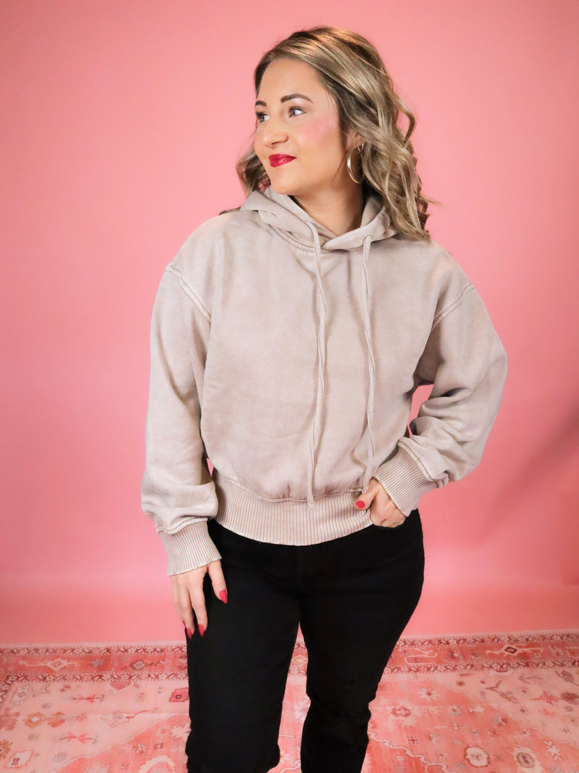 Introducing the "PASSING THROUGH ACID WASH SEMI CROP FLEECE HOODIE"