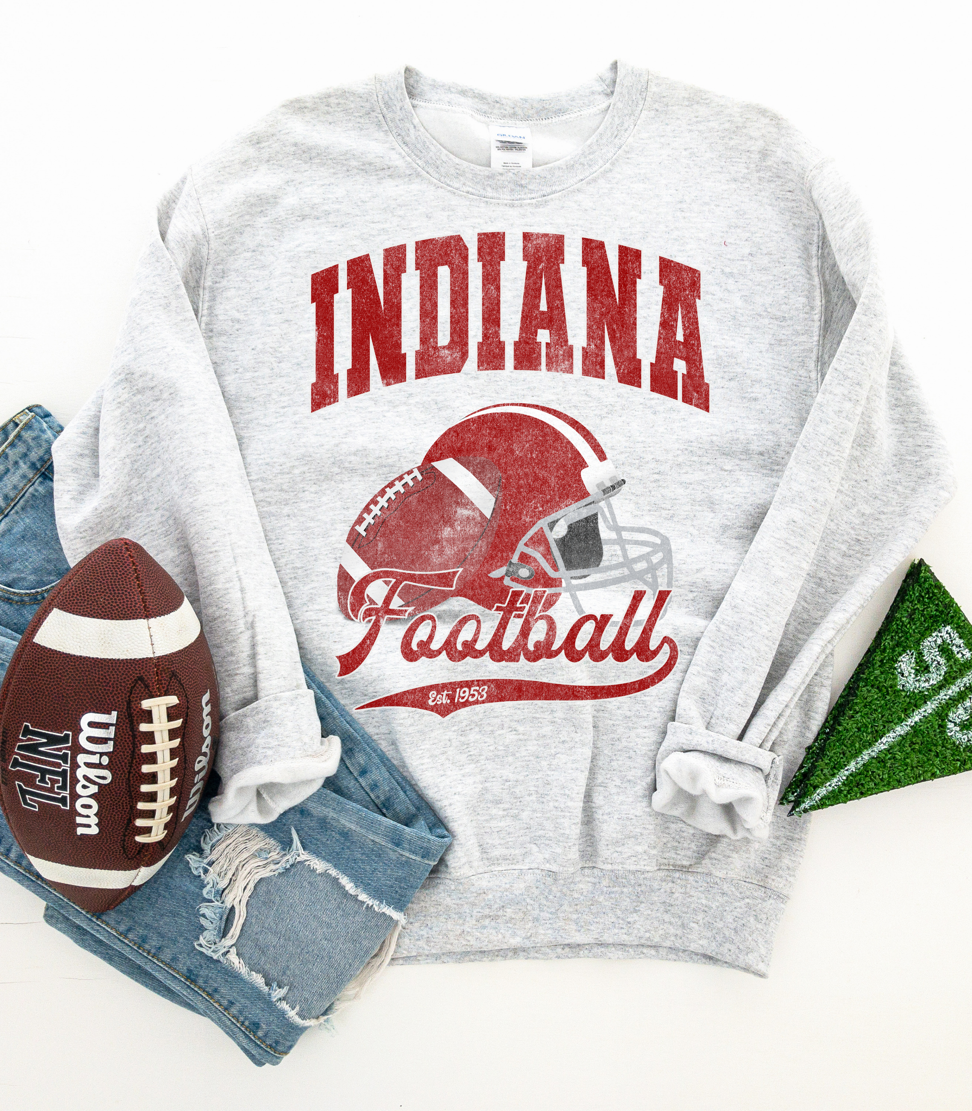 INDIANA FOOTBALL DISTRESSED - SWEATSHIRTS + TEES