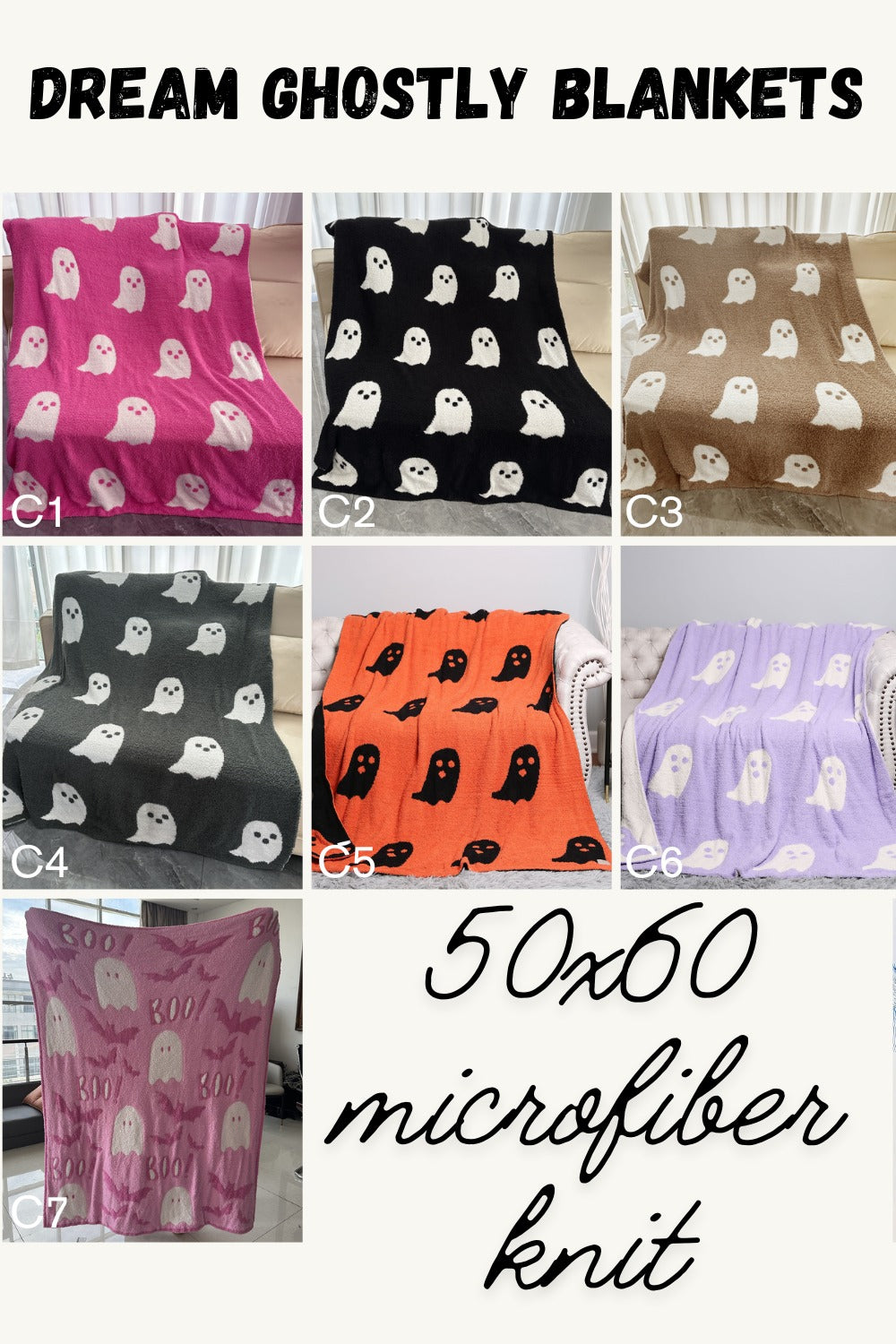 Cuddle up with our dreamy ghost blankets, made with soft and cozy microfiber knit. With 7 colors to choose from, you'll never want to let go of this 50x60 inch blanket. So go ahead, get your spooky cuddle on!