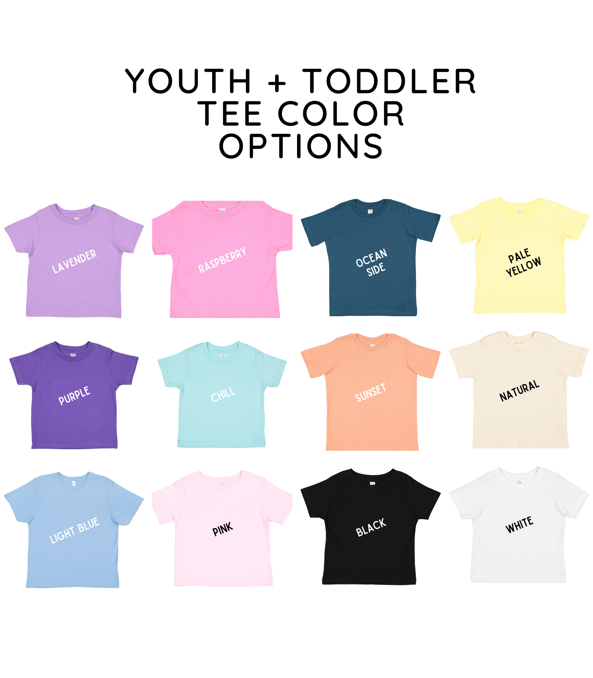 TODDLER + YOUTH TEES are super soft and great quality. These run true to size. We recommend ordering your true size or sizing up for years to come.