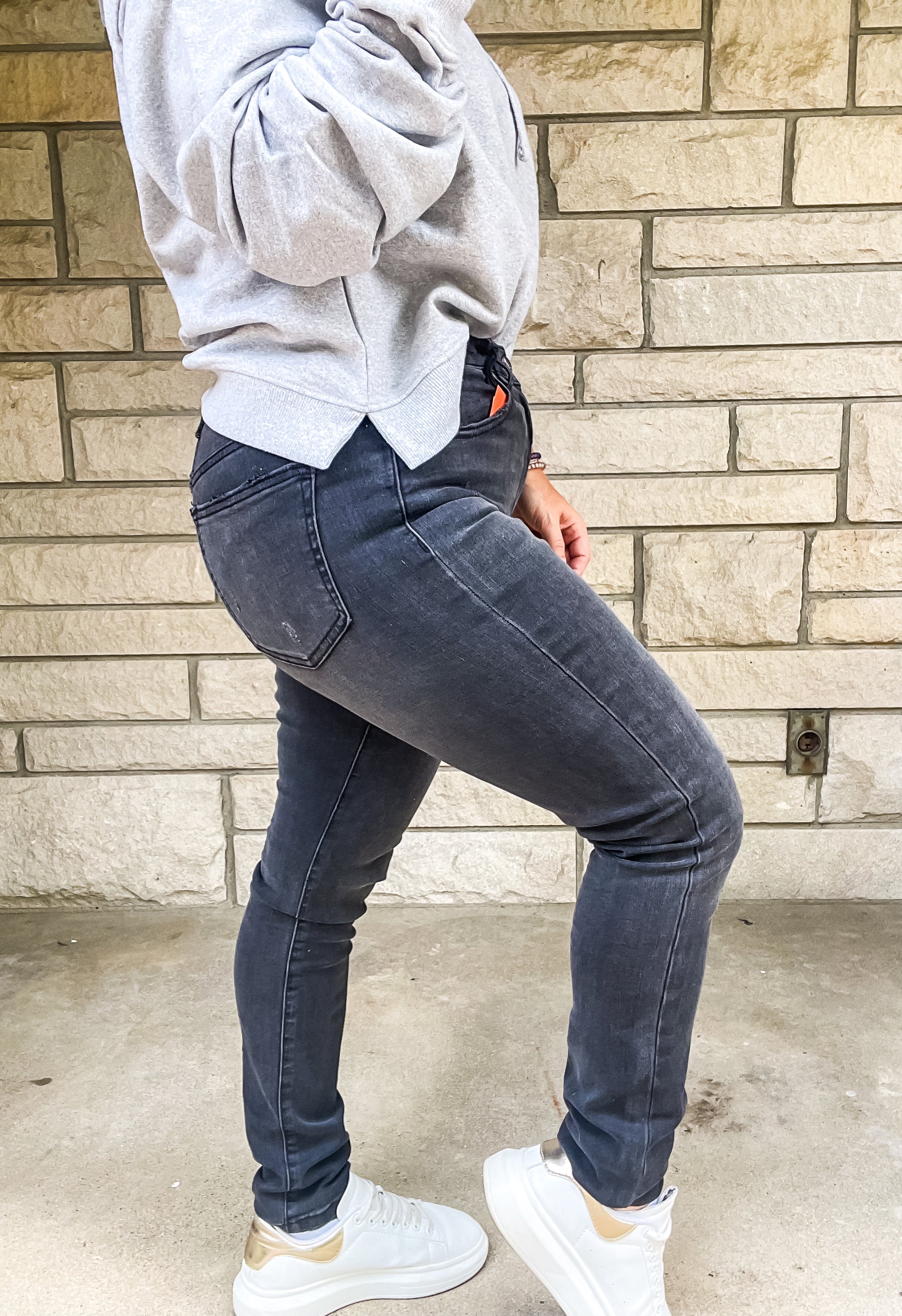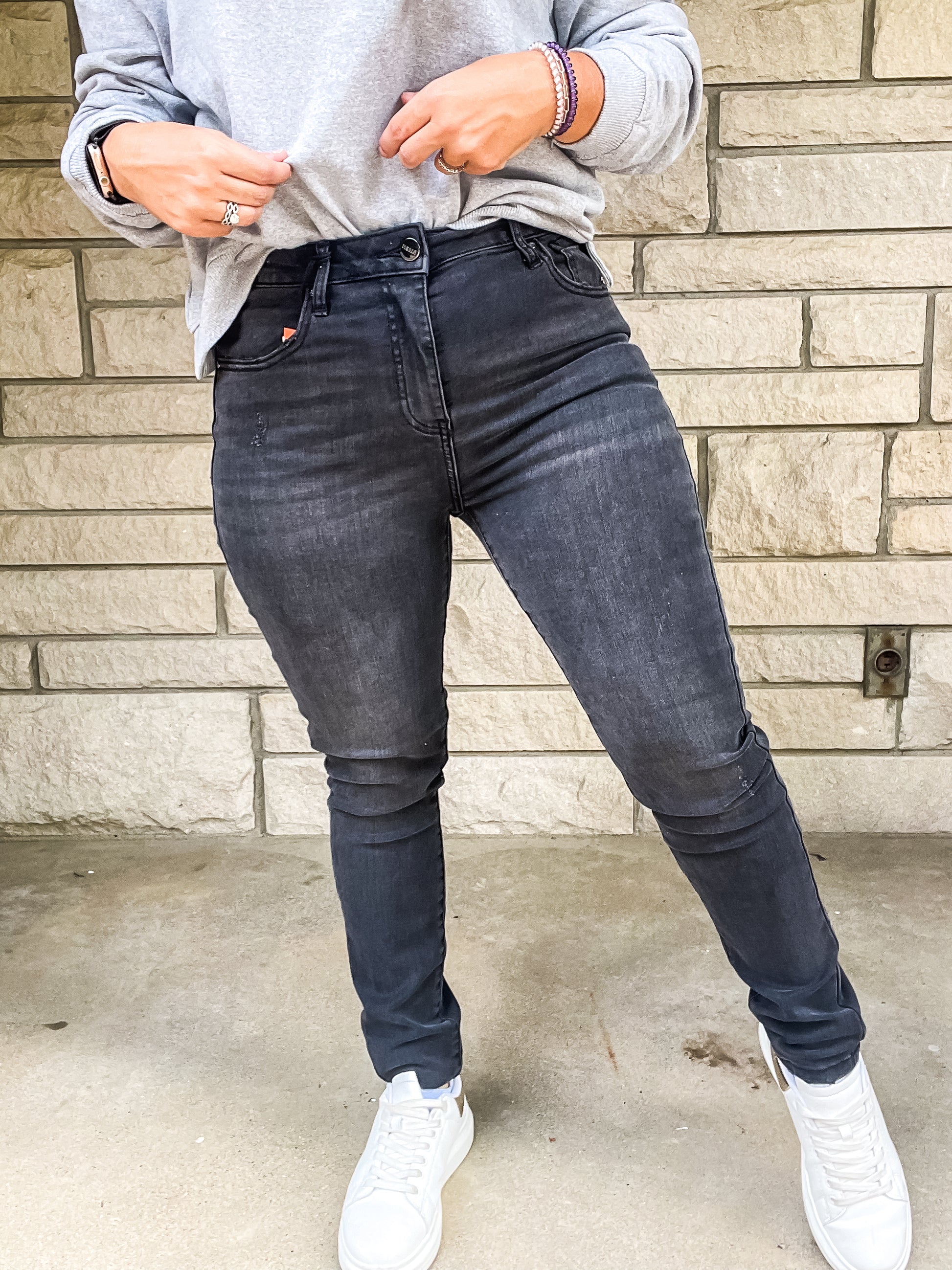 We present to you the Risen Feels So Right Burnout Black Jeans, your ticket to comfort and style! These jeans feel like a dream, stretchy and super comfortable with a raw edge detail and high waist, perfect for any outfit. Ain't nothing like findin' the jean that's truly, madly, deeply just perfect for you, RISEN!