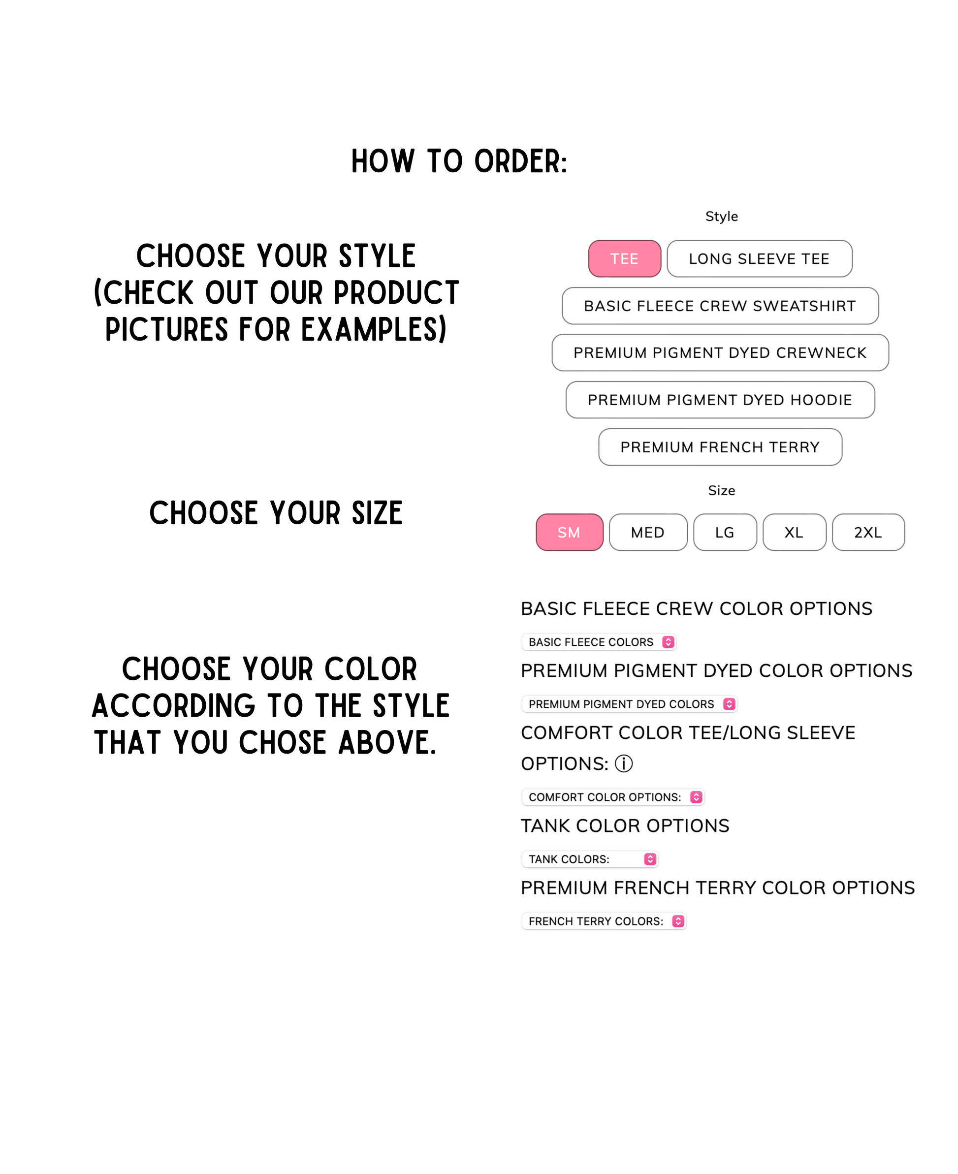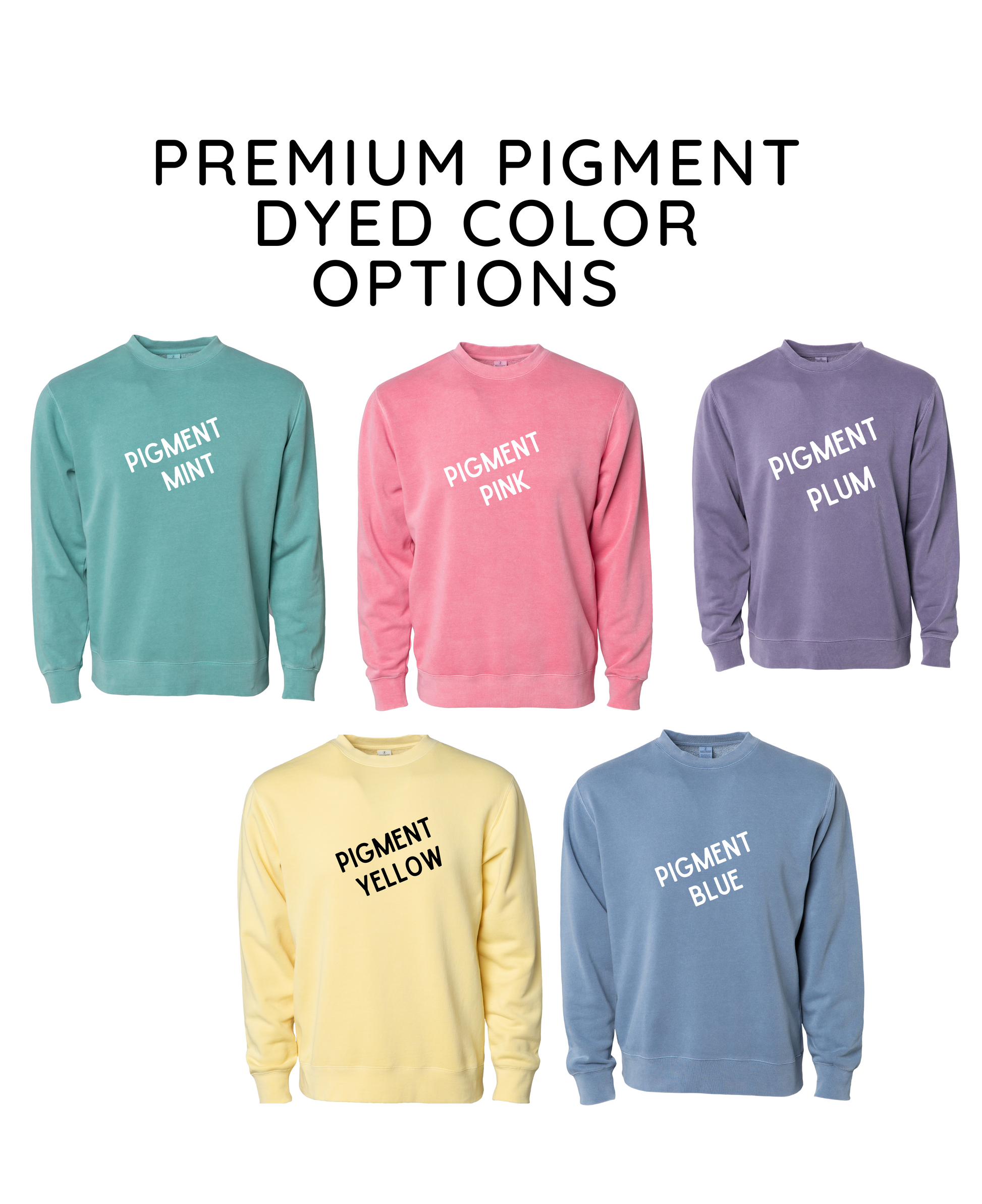 Our premium crews + hoodies are NEXT LEVEL in quality and pigment dyed to ensure the most UNQIUE + brightest colors you won't see anywhere else! These are a unisex fit so they will run slightly larger + longer than typical women's sizing, we recommend order your true size or sizing up for the trendy oversized look!