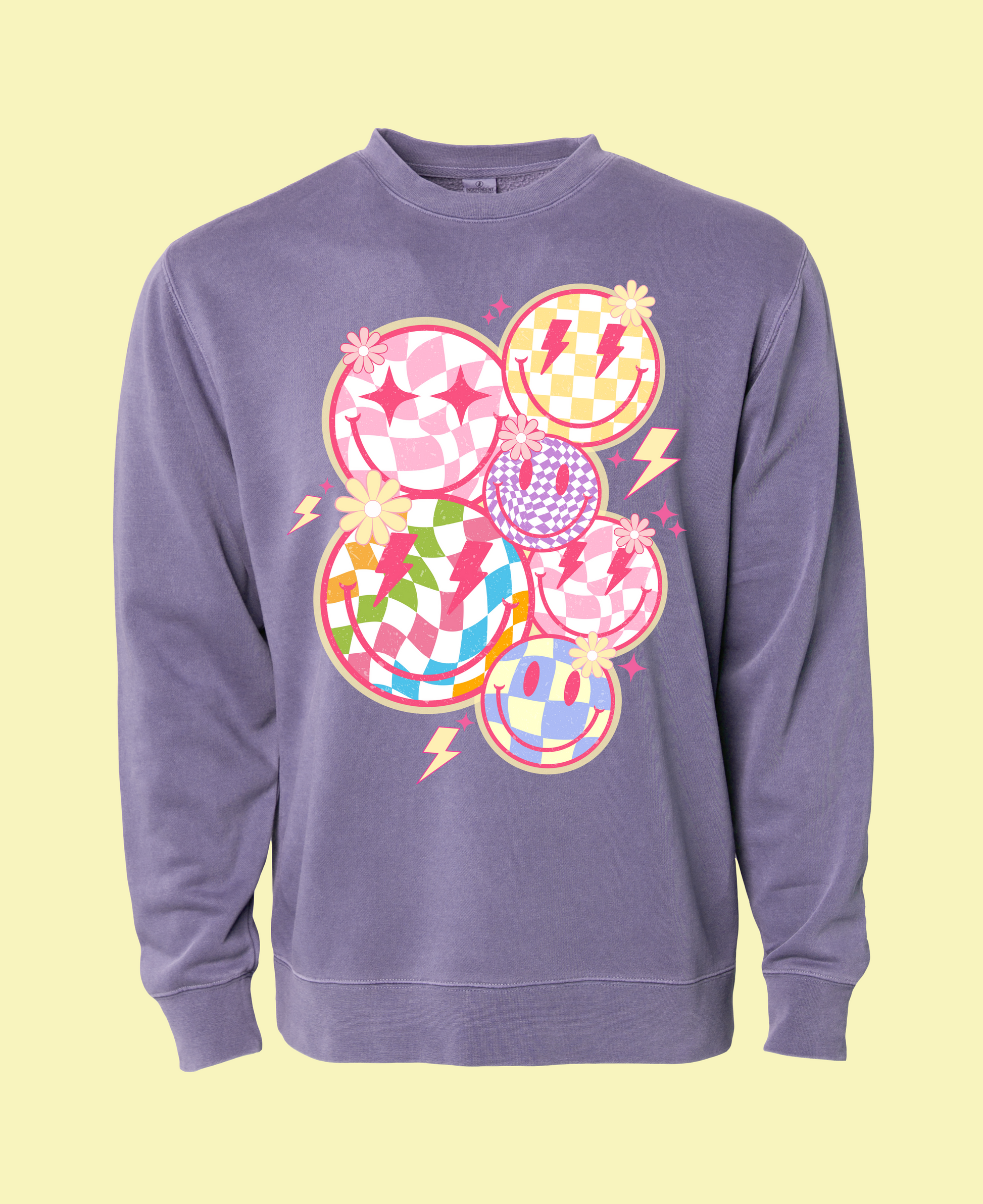Our premium crews + hoodies are NEXT LEVEL in quality and pigment dyed to ensure the most UNQIUE + brightest colors you won't see anywhere else! These are a unisex fit so they will run slightly larger + longer than typical women's sizing, we recommend order your true size or sizing up for the trendy oversized look!
