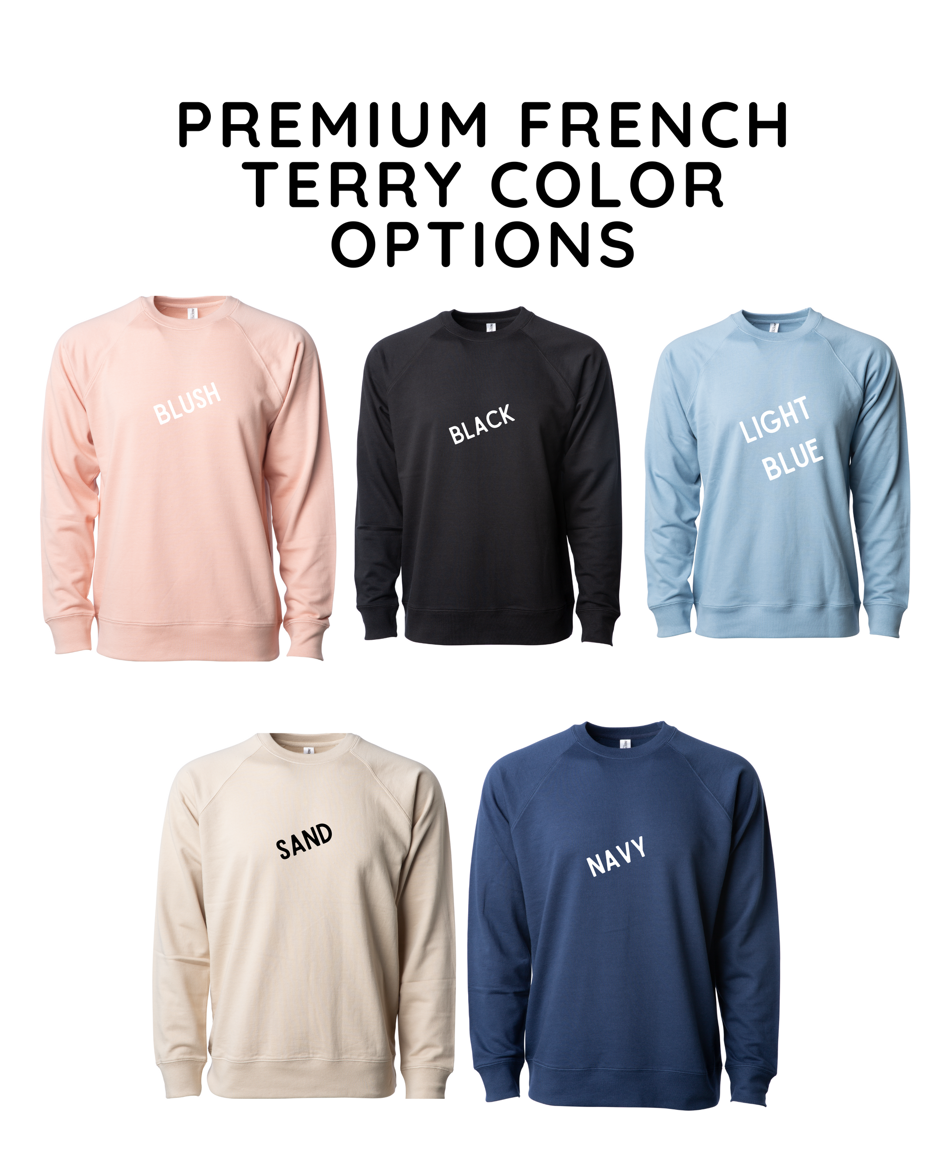 Our Premium French Terry Crew. This fab crew brings together the best of both worlds, with a luxe French terry fit that's the perfect balance between fleece and long sleeve tee. Get ready to lounge in style, with legging length coverage and a unisex fit that we suggest sizing up in for the ultimate cozy experience. So comfy you won't wanna take it off!