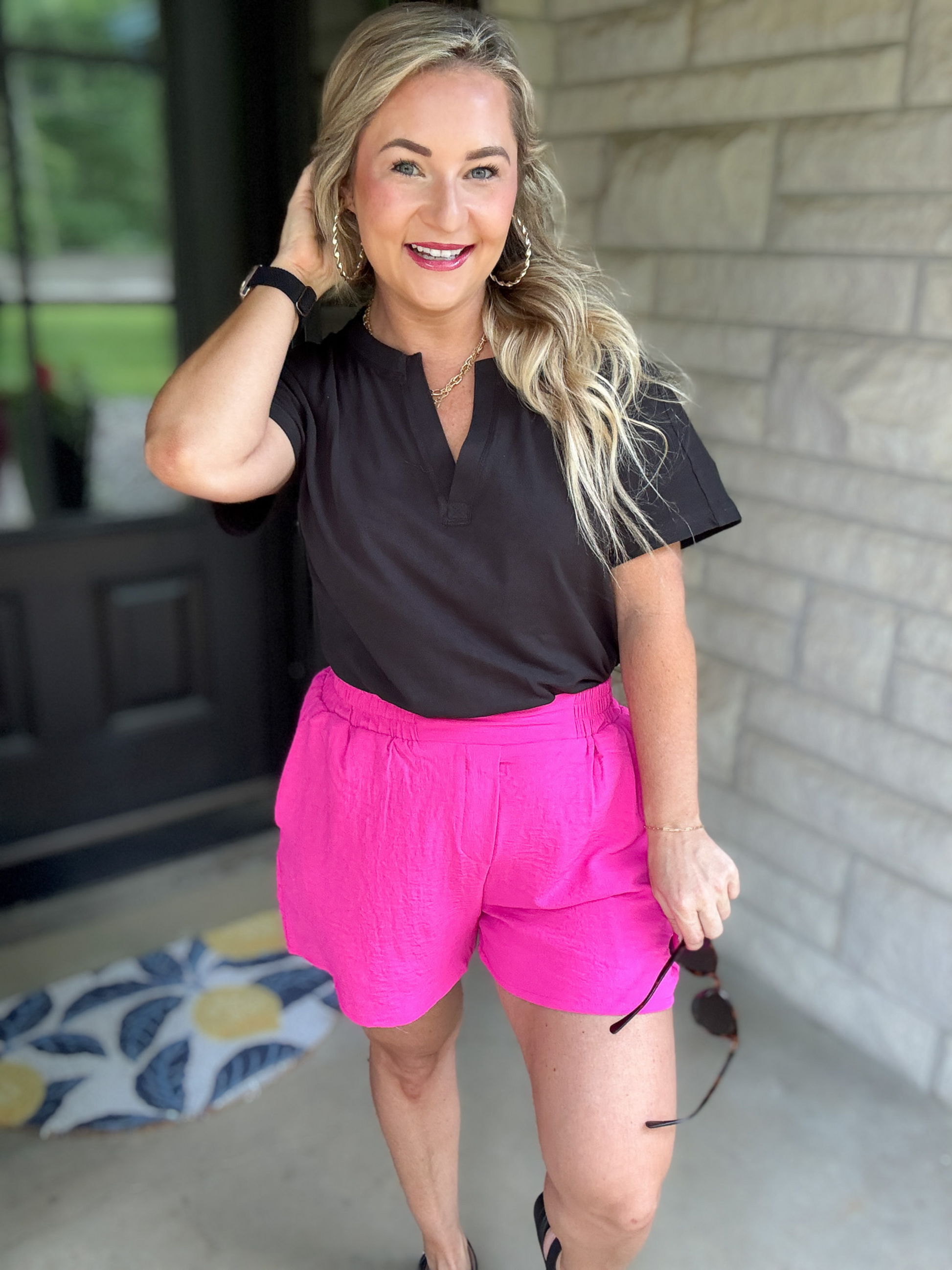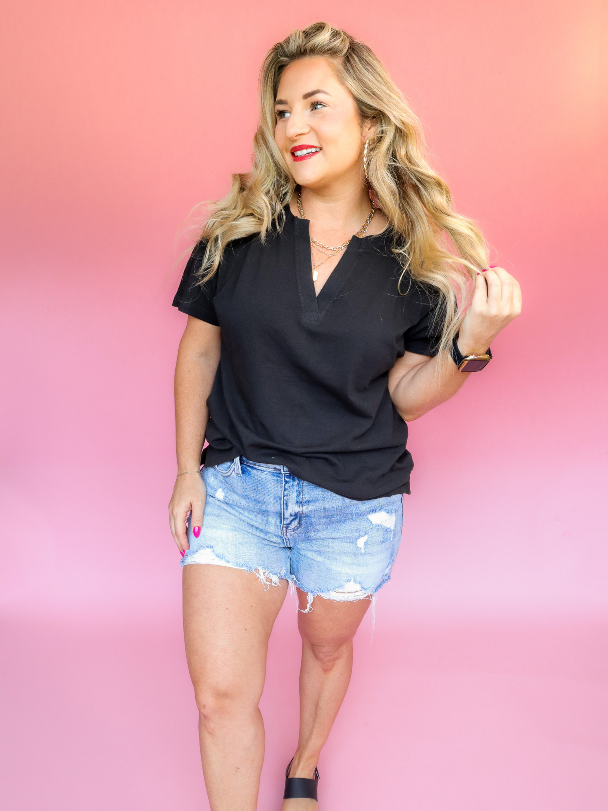 THE SOFTEST TEE ON THE PLANET! This loose, boxy T-shirt is all about laid-back vibes with a cute twist. Featuring a playful henley neckline and a super soft feel, it’s perfect for cozy mornings, coffee runs, or doing absolutely nothing at all. The slightly high-low hem and cheeky side slits give it that effortless flair—because comfort should always look this good!