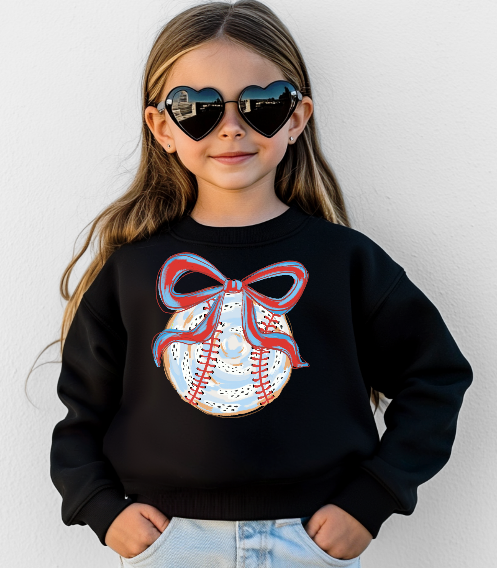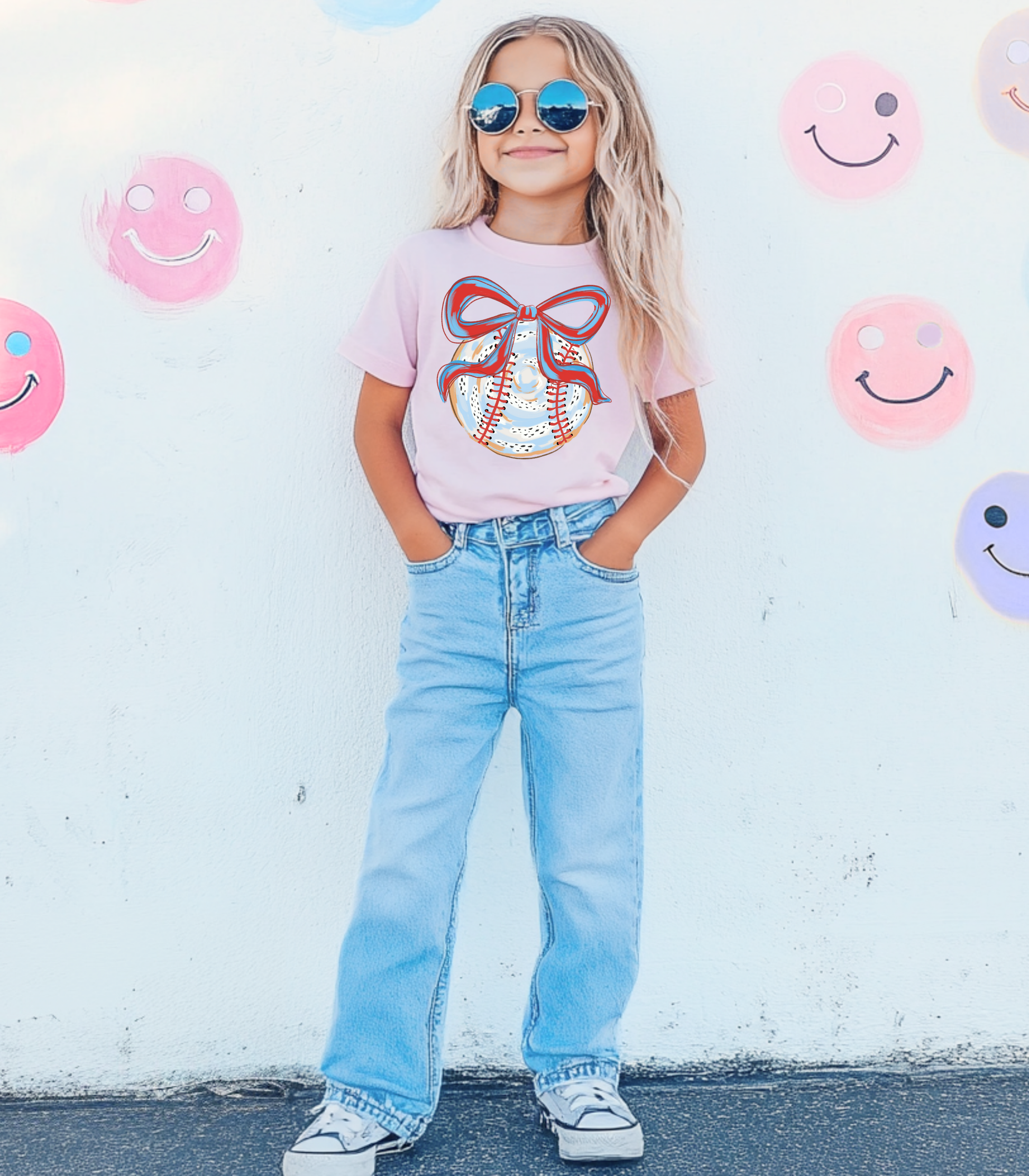 WATERCOLOR BASEBALL BOW FRONT ONLY - MULTIPLE STYLES - TODDLER/YOUTH