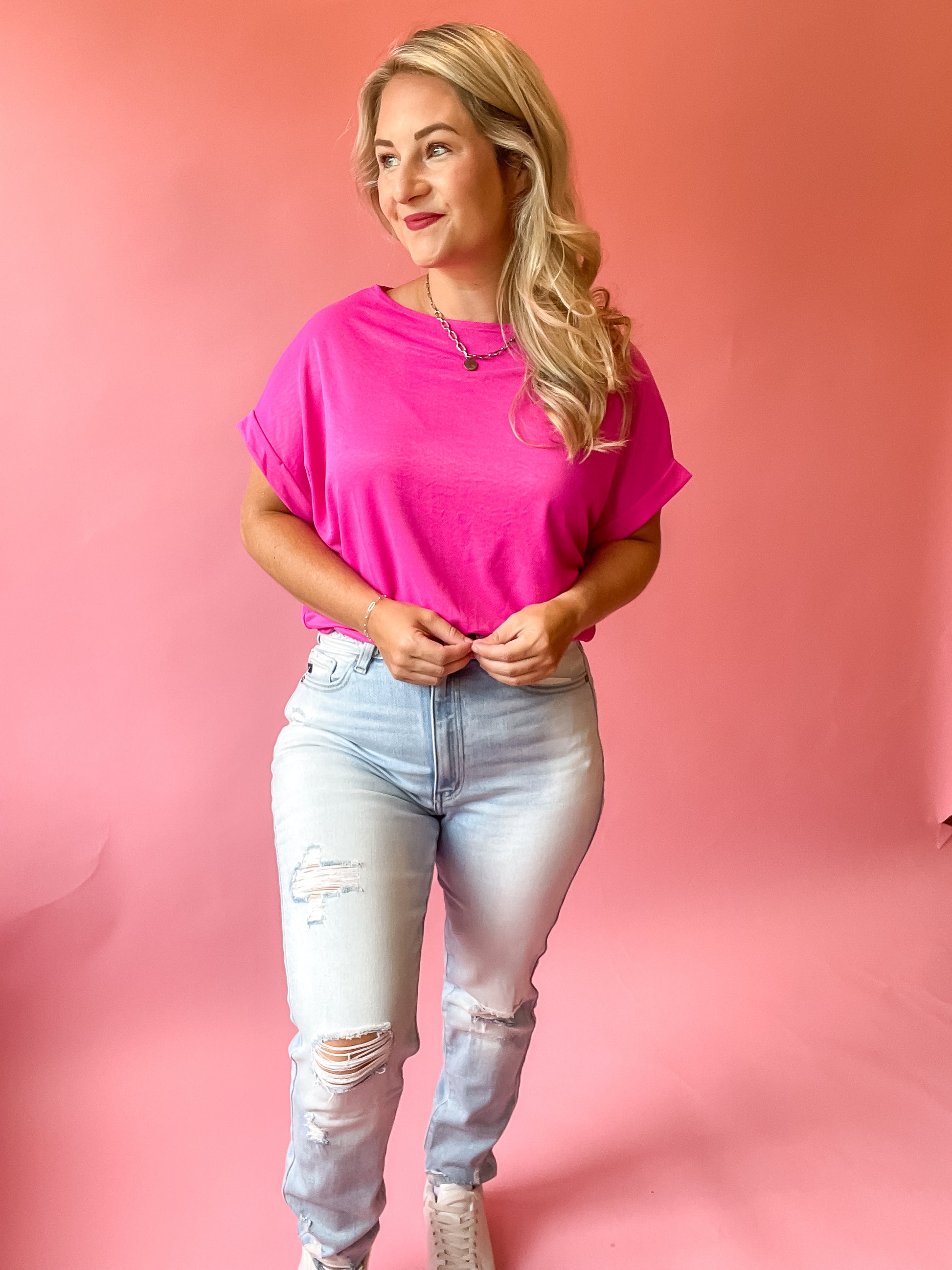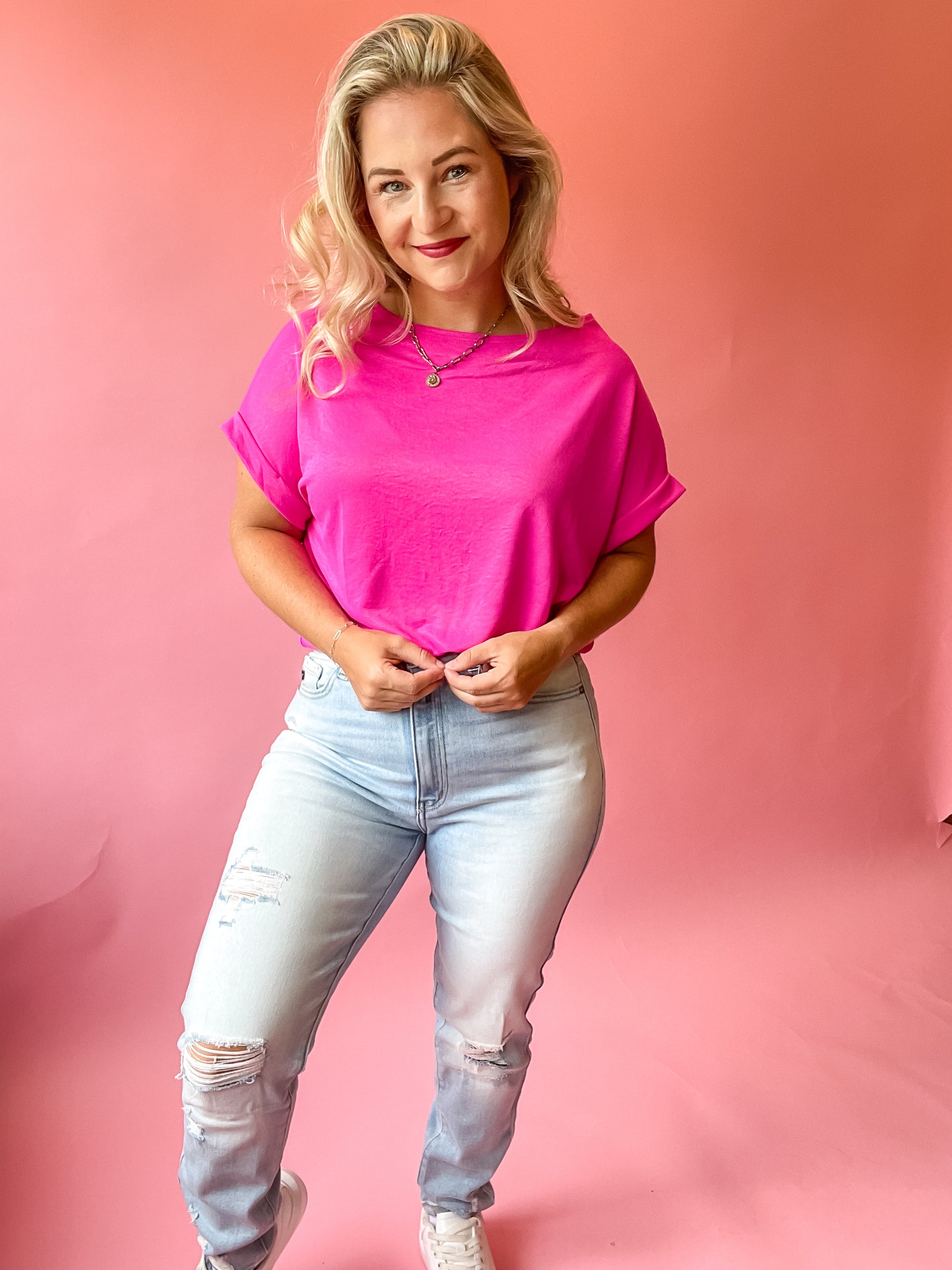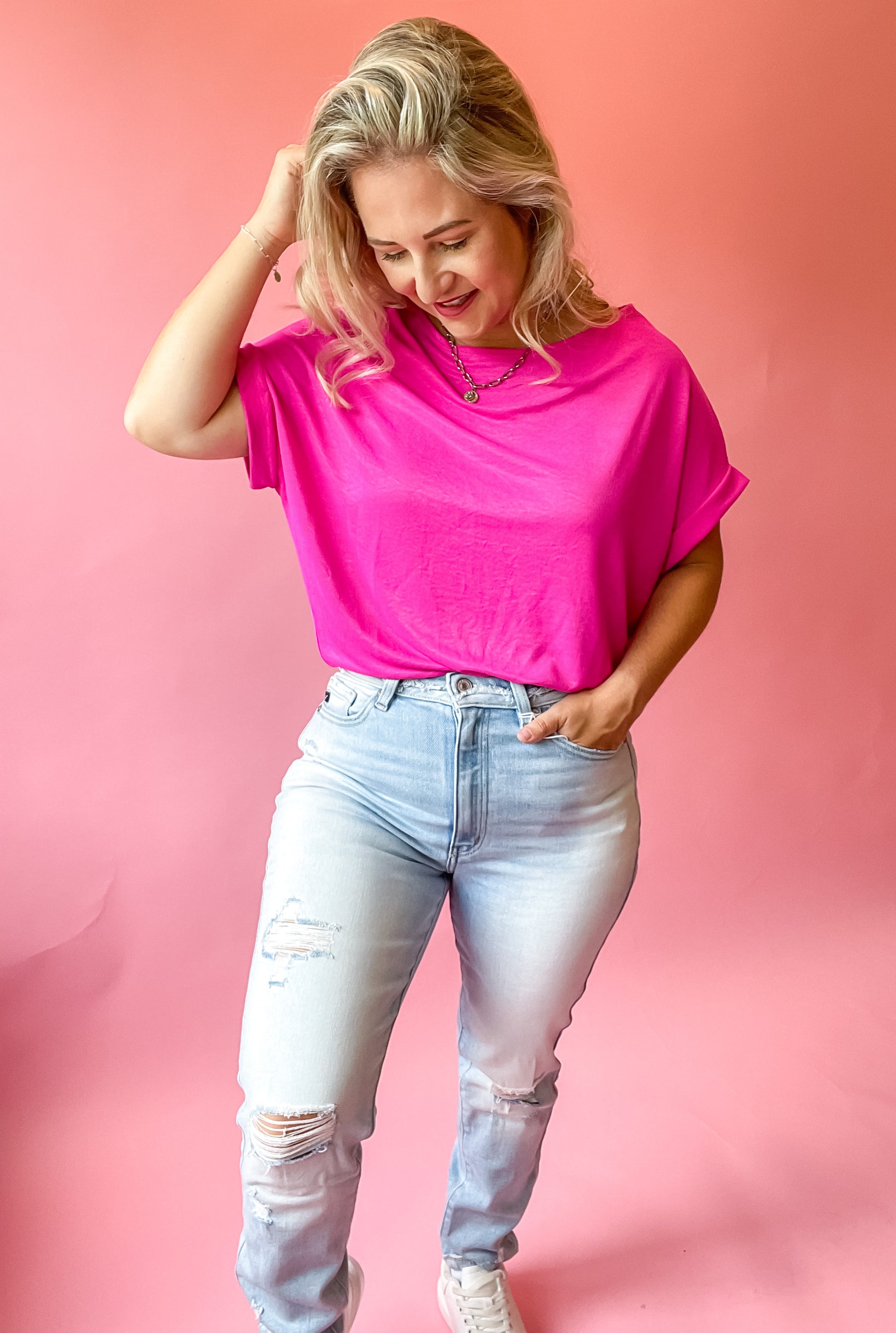 YOU PROOF HOT PINK DOLMAN TOP - FINAL SALE